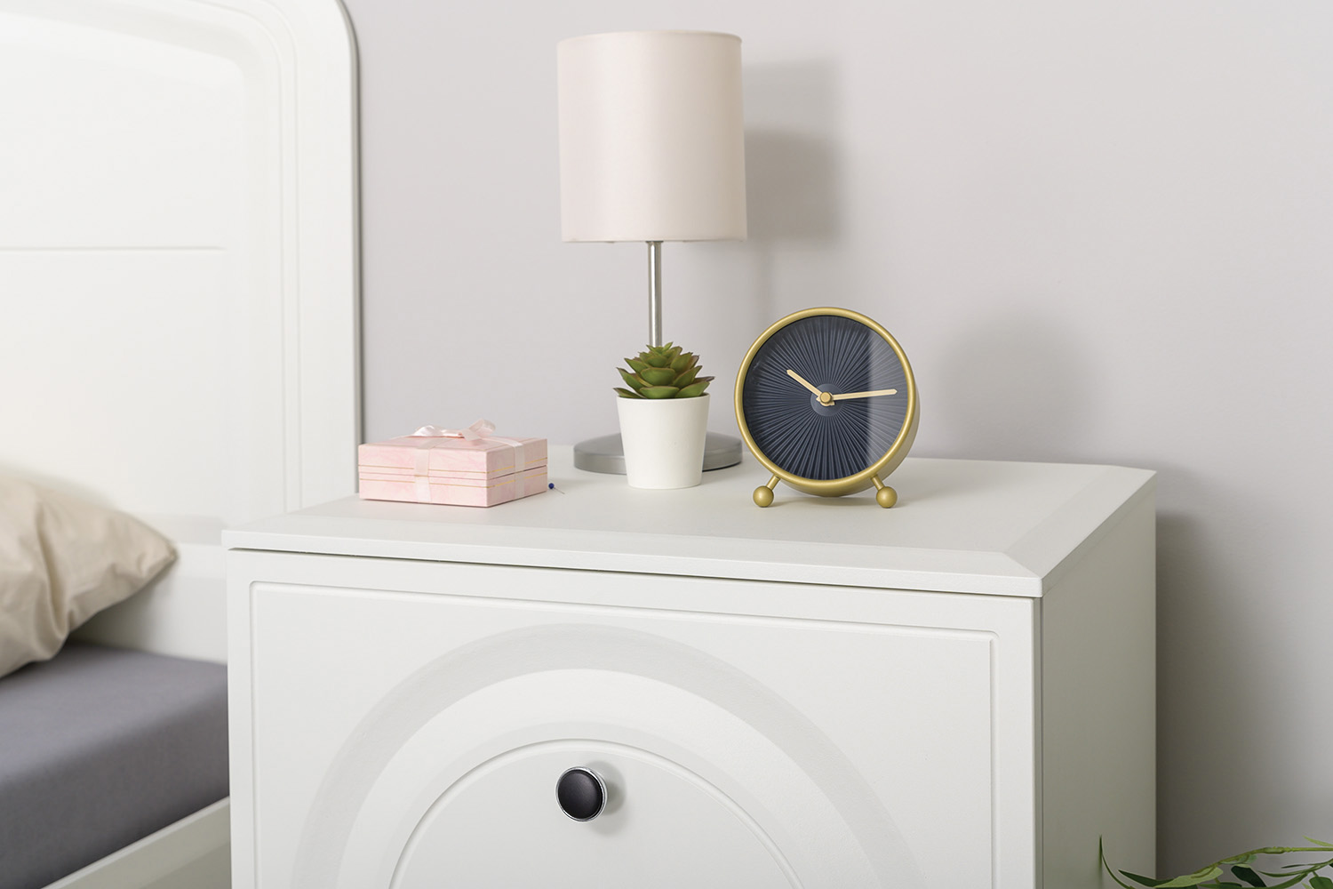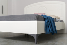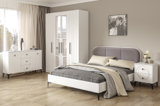 Фасады выполнены из МДФ с матовой ПВХ-плёнкой. Такое решение делает мебель визуально более "мягкой", комфортной и расслабляющей, что особенно актуально для спальни.