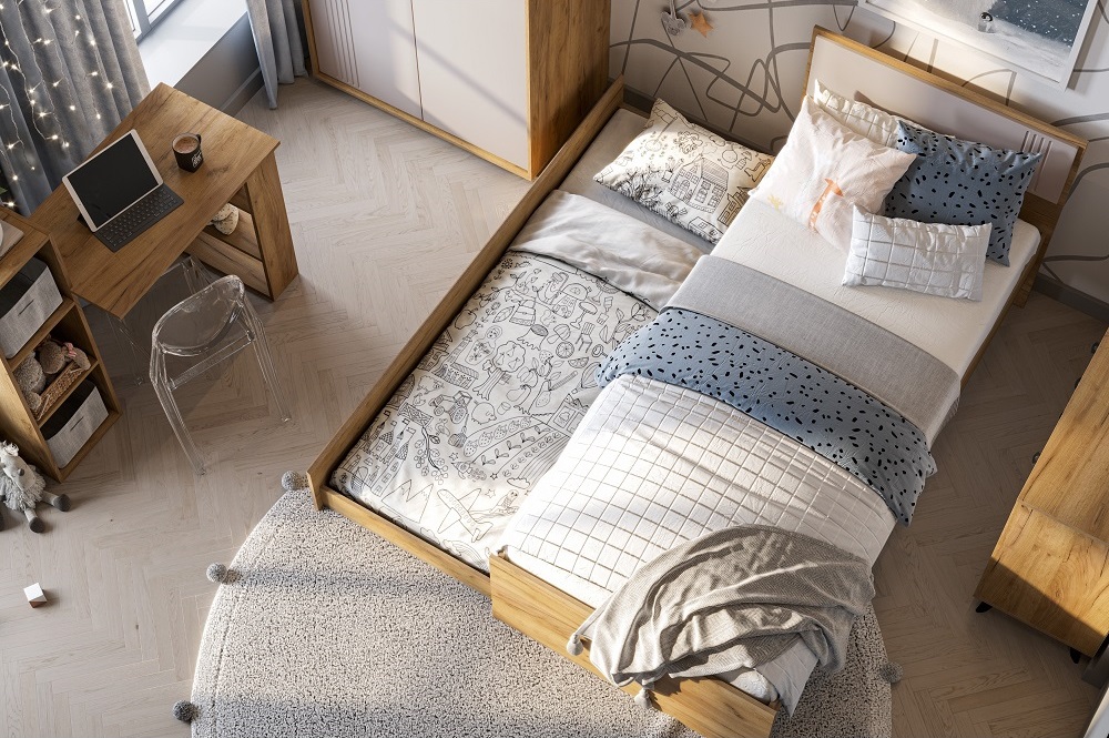 Добавьте стильный акцент в подростковую или детскую комнату с односпальной кроватью Тоскана. Модуль оснащен основанием и выкантым ящиком, который является дополнительным спальным местом размером 80х190 см.