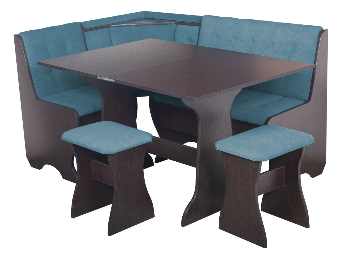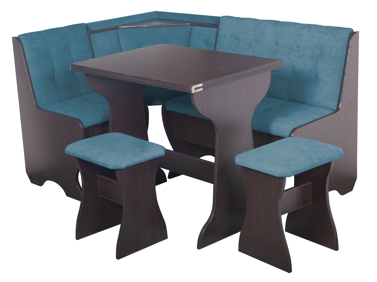 Кухонный уголок Стиль 1Л (со столом СТ3) Дуб венге / велюр (Бирюза) Код I0000390646