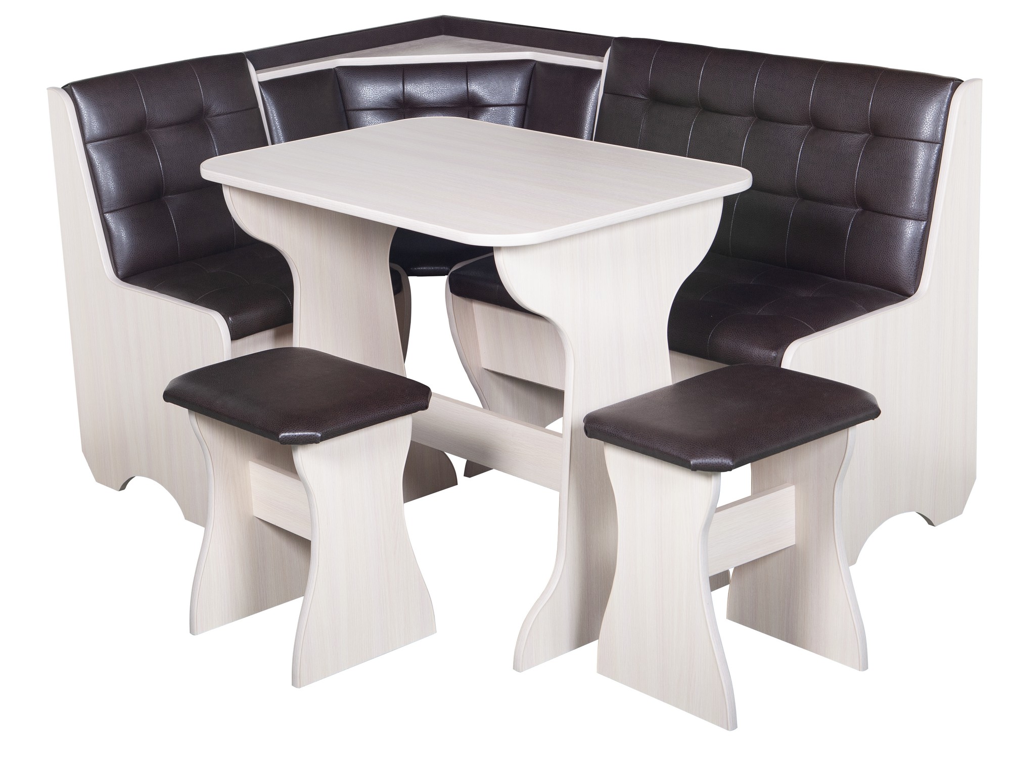 Набор состоит из Кухонного уголка Стиль 1Л, стола и двух табуретов.