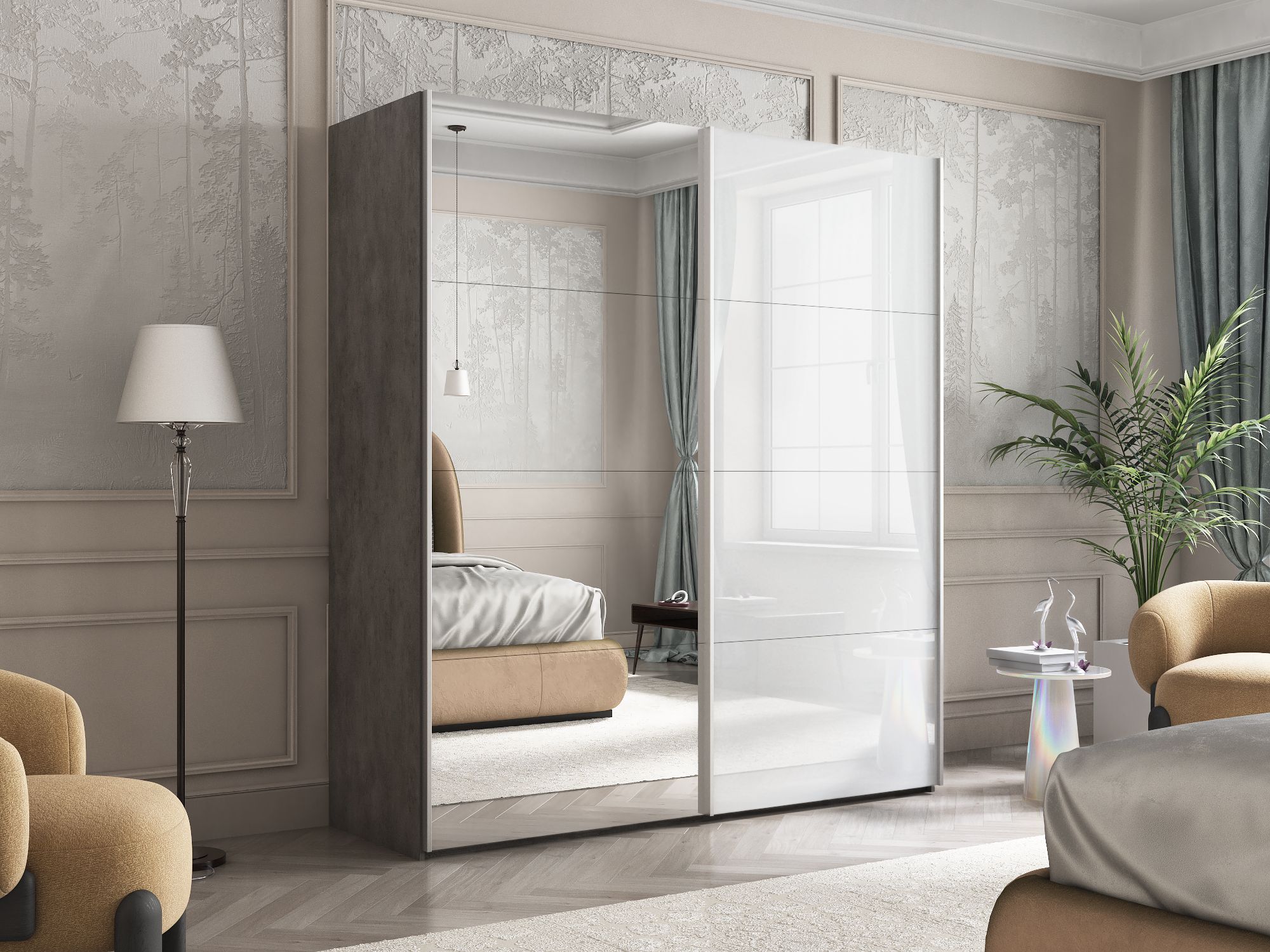 Отзывы о Столплит Шкаф Эста дуо Стекло белое/зеркало 2400 х 1800 х 660 Бетон серый