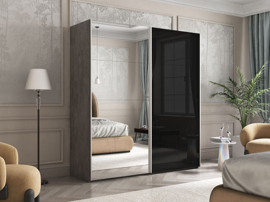 Отзывы о Столплит Шкаф Эста дуо Стекло черное/зеркало 2400 х 1800 х 660 Бетон серый