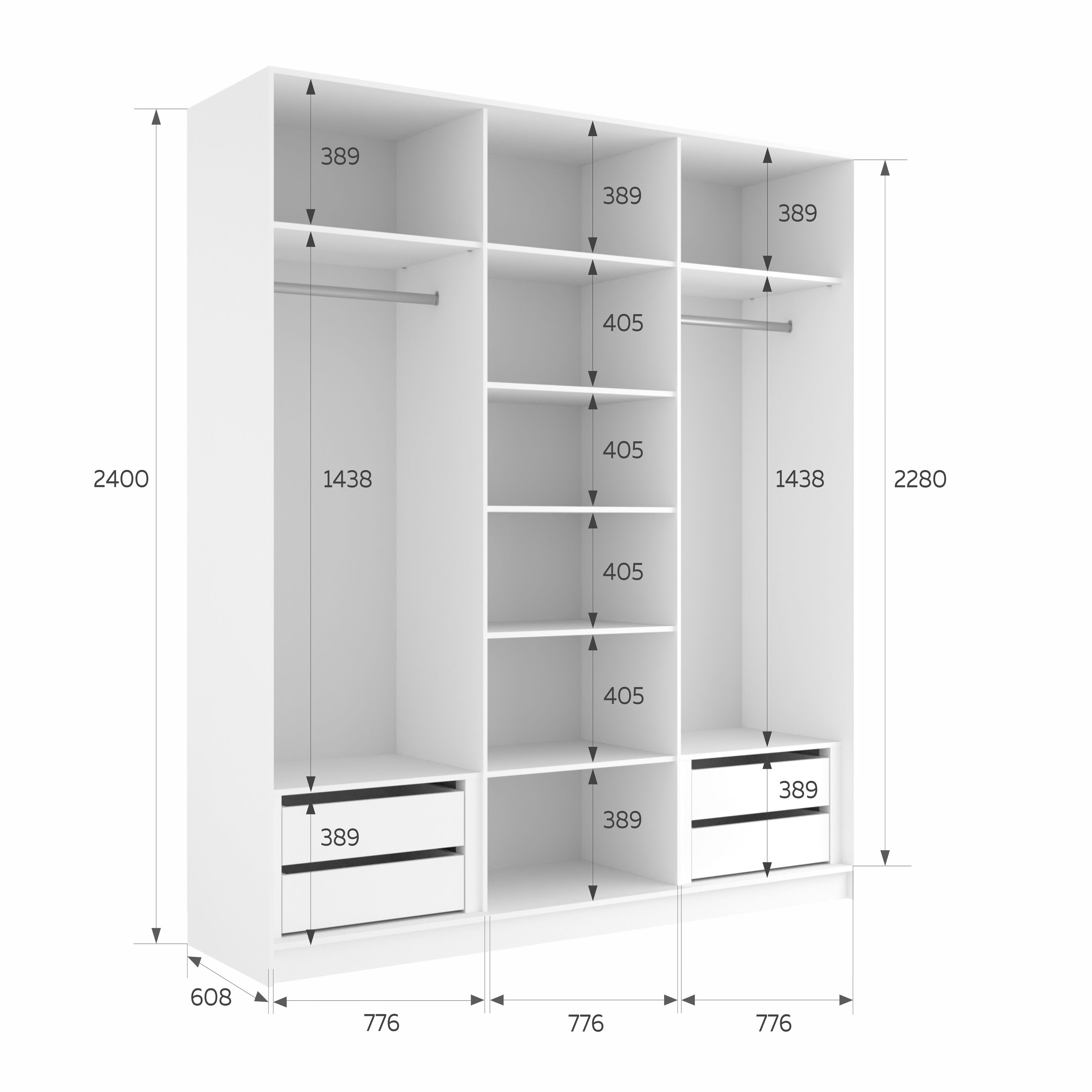 Отзывы о Столплит Шкаф-купе Эста Зеркало+Зеркало+Зеркало 240х66х240 Белый