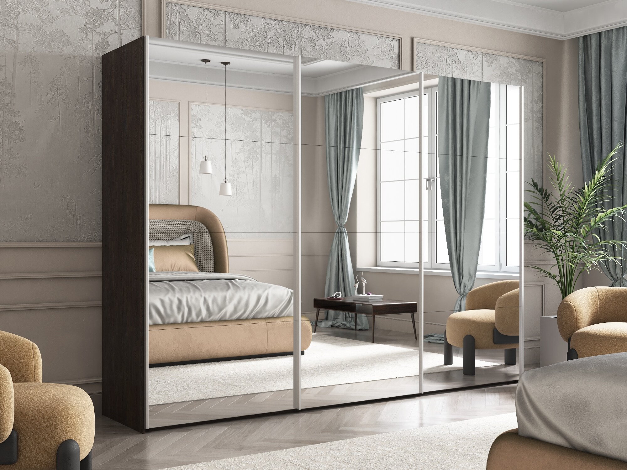 Отзывы о Столплит Шкаф-купе Эста Зеркало+Зеркало+Зеркало 300х66х240 Венге мали