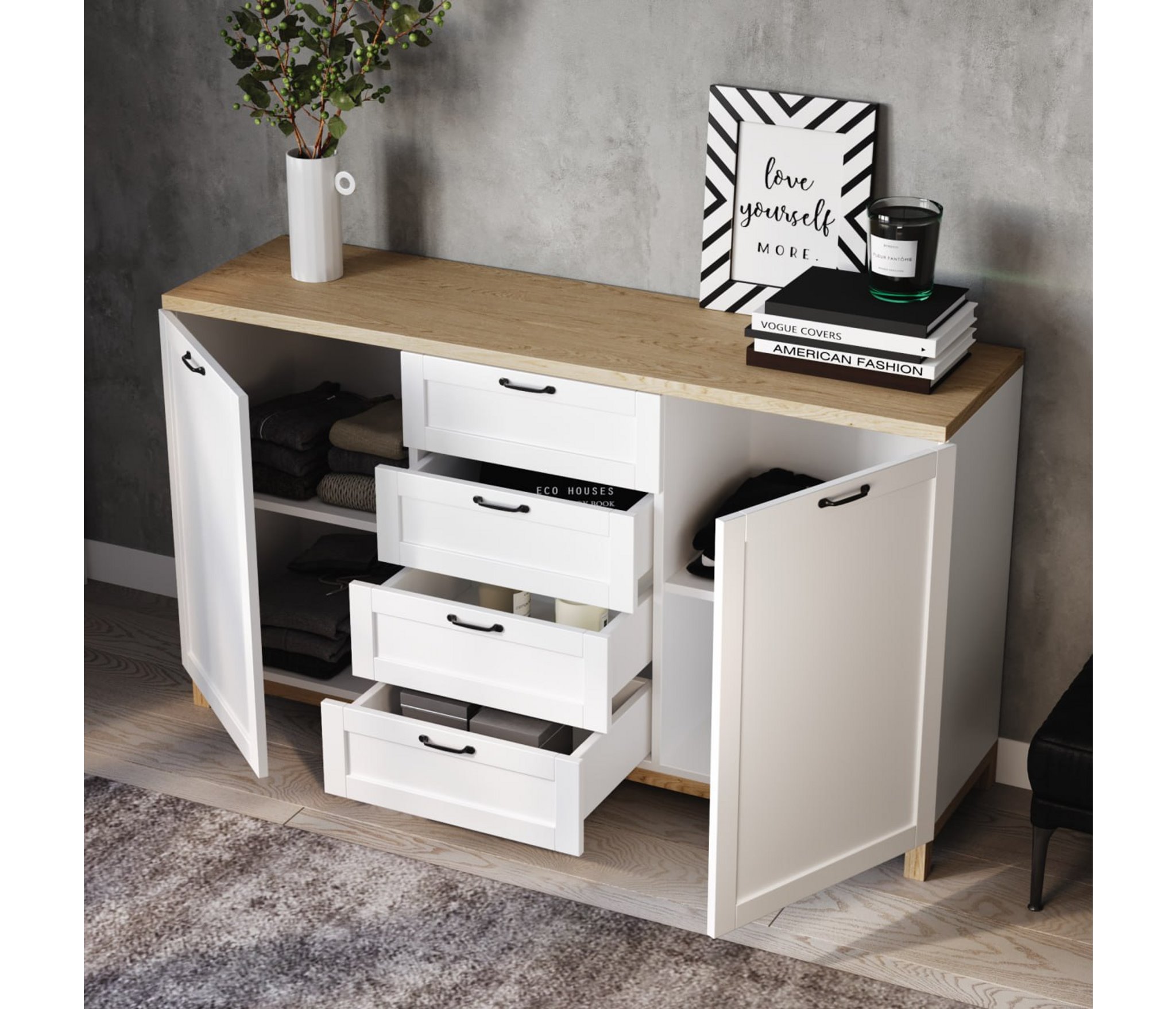 Мебель серии Техас выполнена из ЛДСП класса эмиссии E1, фасады МДФ покрытые матовой пленкой. Ножки выполнены из массива бука. Данная мебель является не только прекрасным модулем для хранения различных вещей, но и станет украшением вашего интерьера.