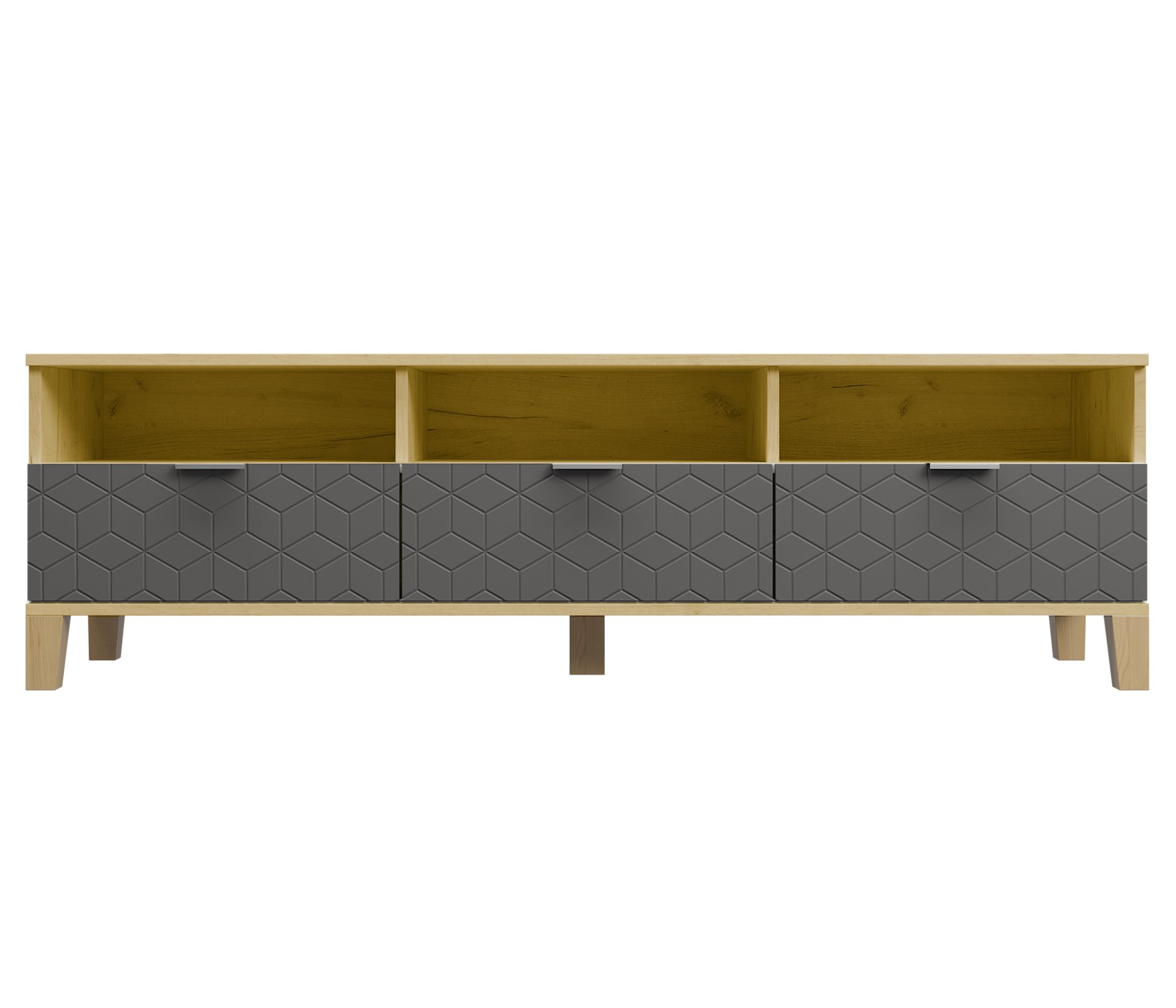 Тумба под ТВ Марвин, выполненные в скандинавском стиле, органично дополнят интерьер любой комнаты. Ножки из массива бука, геометрическая фрезеровка на фасадах, сочетание цветов отличительная черта серии комодов Марвин.