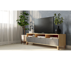 Тумба под ТВ этой модели сделан из матового мдф и лдсп, что обеспечивает его экологичность и долговечность.