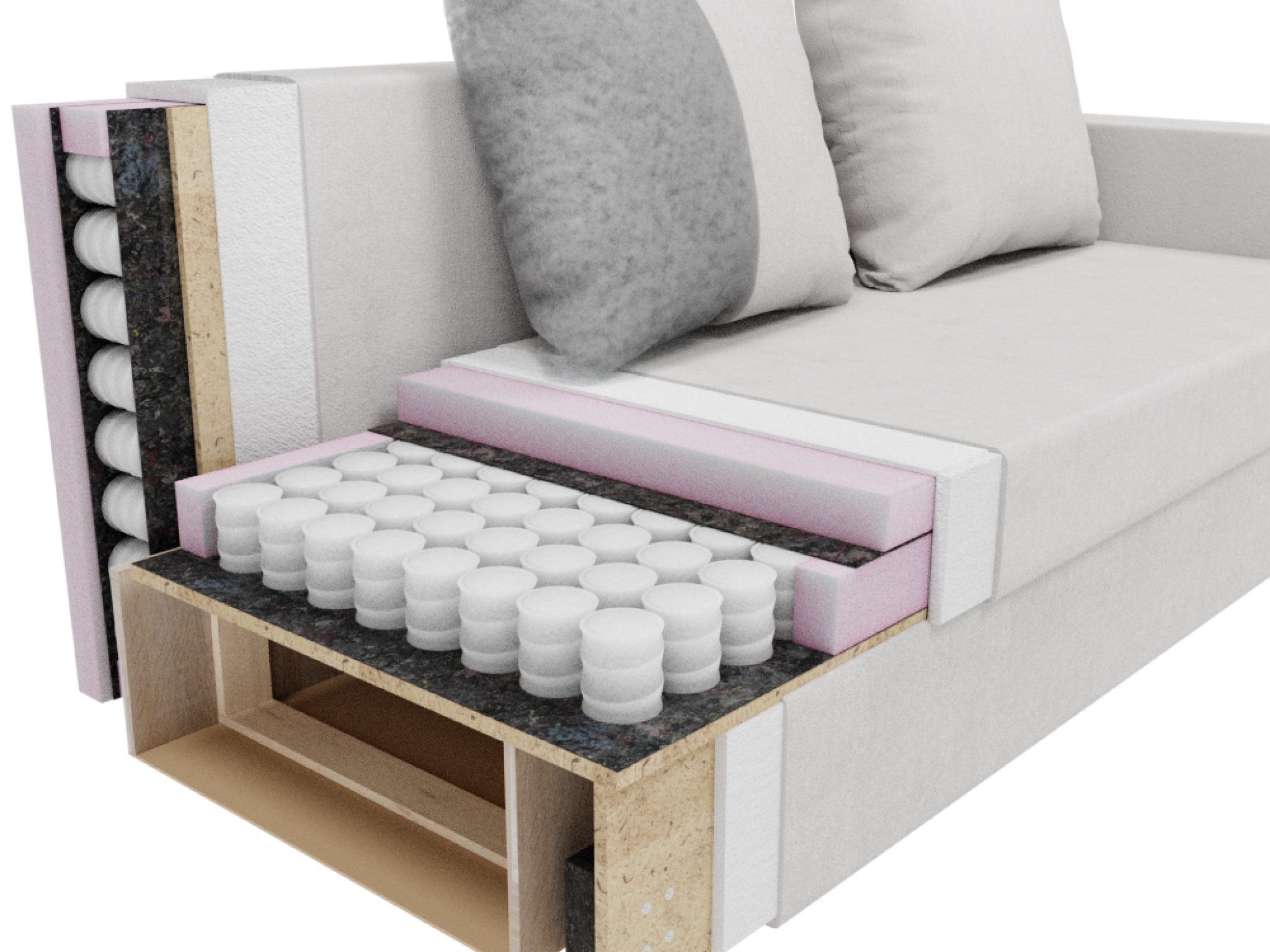 - Наполнитель из пенополиуретана, который обеспечивает мягкость и поддержку;