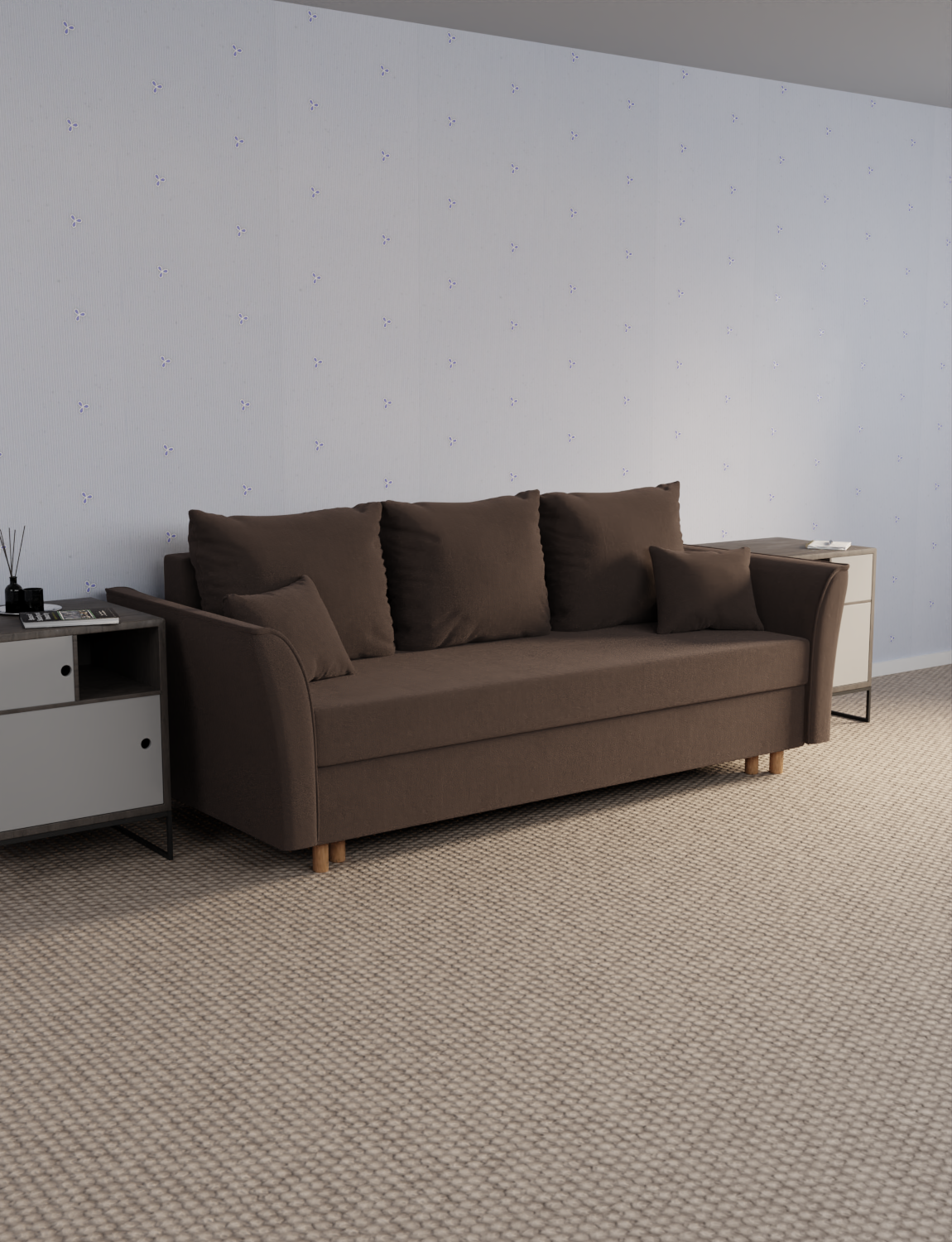 Этот диван-кровать является прекрасным решением для тех, кто ценит комфорт, стиль и универсальность. Изготовленный из прочного велюра, механизм "евро-книжка", что делает его легко трансформируемым и подходящим для любого интерьера. Благодаря съемным подушкам, диван можно легко адаптировать под ваши потребности и обеспечить дополнительное удобство. Его высота, ширина и глубина обеспечивают удобную посадку, а размеры спального места позволяют разместить до 2 человек.
