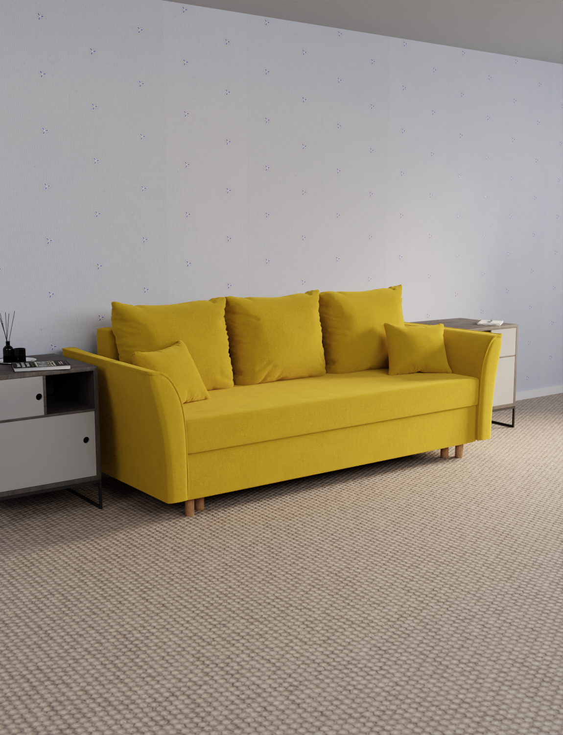 Этот диван-кровать является прекрасным решением для тех, кто ценит комфорт, стиль и универсальность. Изготовленный из прочного велюра, механизм "евро-книжка", что делает его легко трансформируемым и подходящим для любого интерьера. Благодаря съемным подушкам, диван можно легко адаптировать под ваши потребности и обеспечить дополнительное удобство. Его высота, ширина и глубина обеспечивают удобную посадку, а размеры спального места позволяют разместить до 2 человек.