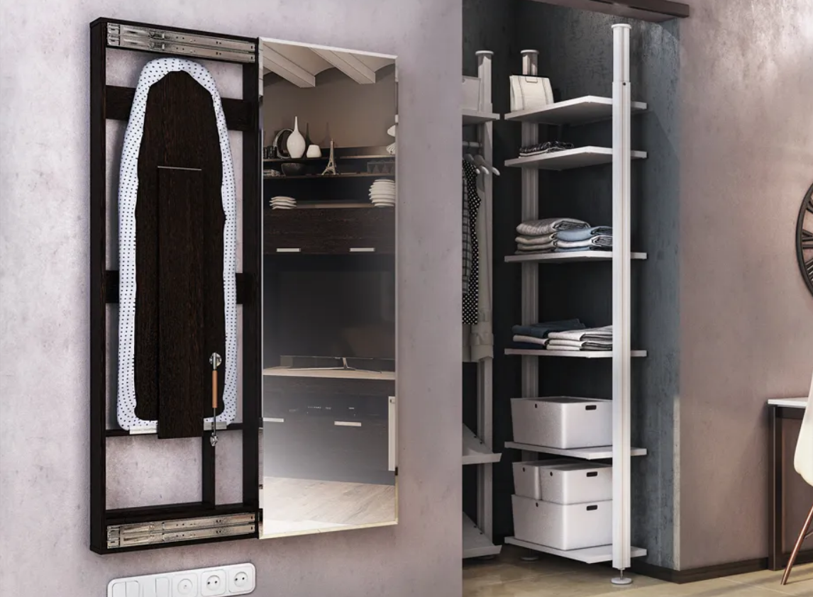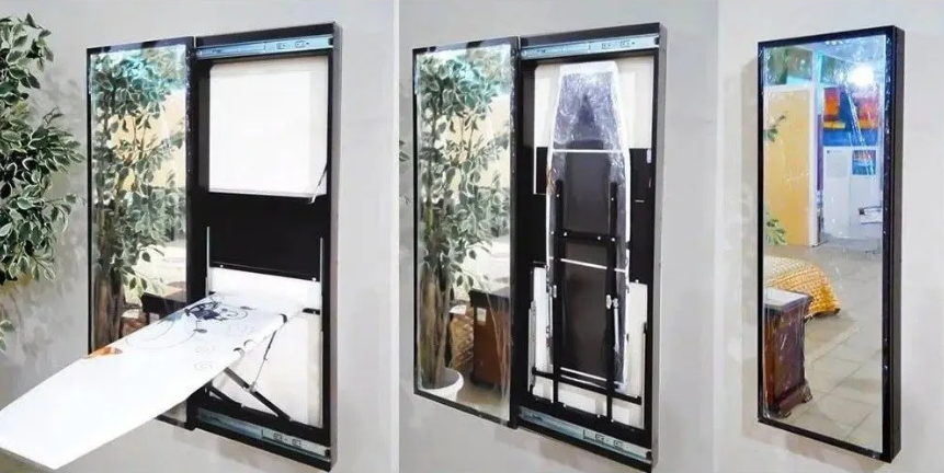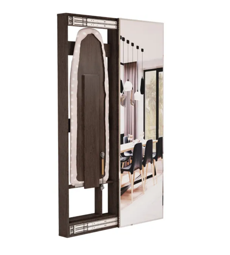 В каждой квартире есть гладильная доска, но не в каждой квартире есть место для ее хранения. Устали постоянно доставать, разбирать, собирать, убирать обратно гладильную доску? Не хватает место для ее хранения? Не можете вписать ее в интерьер? Компания мебельная индустрия предлагает Вам решение. Настенная гладильная доска за зеркалом – это практичное решение, которое понравится любой хозяйке. В закрытом состоянии она выглядит как обычное зеркало в полный рост, а в открытом это полноценная гладильная доска.