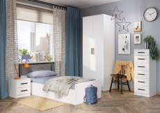 Коллекция мебели для спальни Фьюжн является воплощением эстетики минимализма. Белый цвет в сочетании с черной фурнитурой, строгие линии, простой конструктив – все это лучшие черты мебельного дизайна. Высокий комод с 6-тью ящиками на направляющих плавного выдвижения поможет организовать хранение вещей в сложенном виде, аксессуаров, книг.