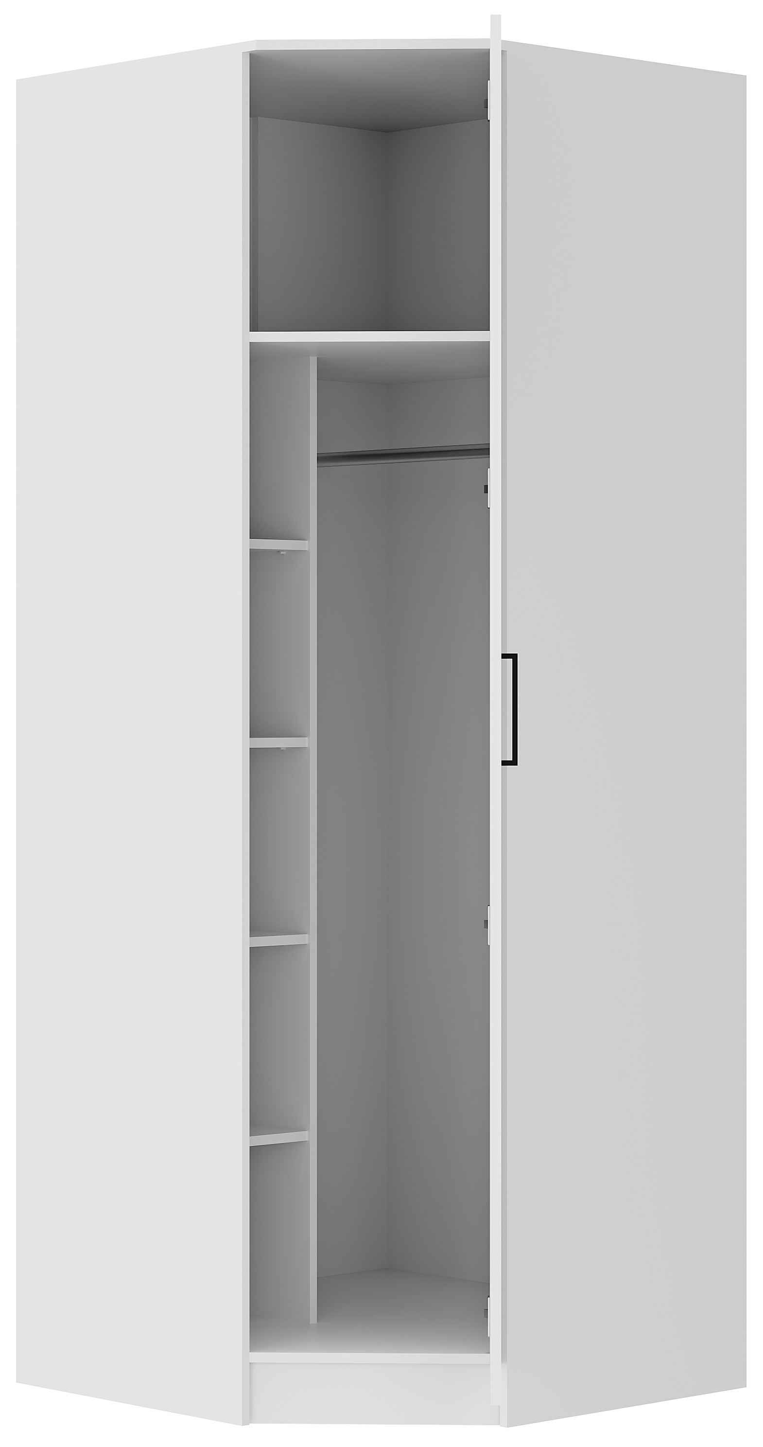 Шкаф угловой Фьюжн ШКУ-04 - это настоящая эстетика минимализма. Строгие линии, спокойная цветовая гамма идеально впишутся в современный дизайн комнаты. Функциональное внутреннее наполнение из стационарной штанги и полок позволит разместить белье, одежду и аксессуары в одном месте, грамотно использовав пространство комнаты.