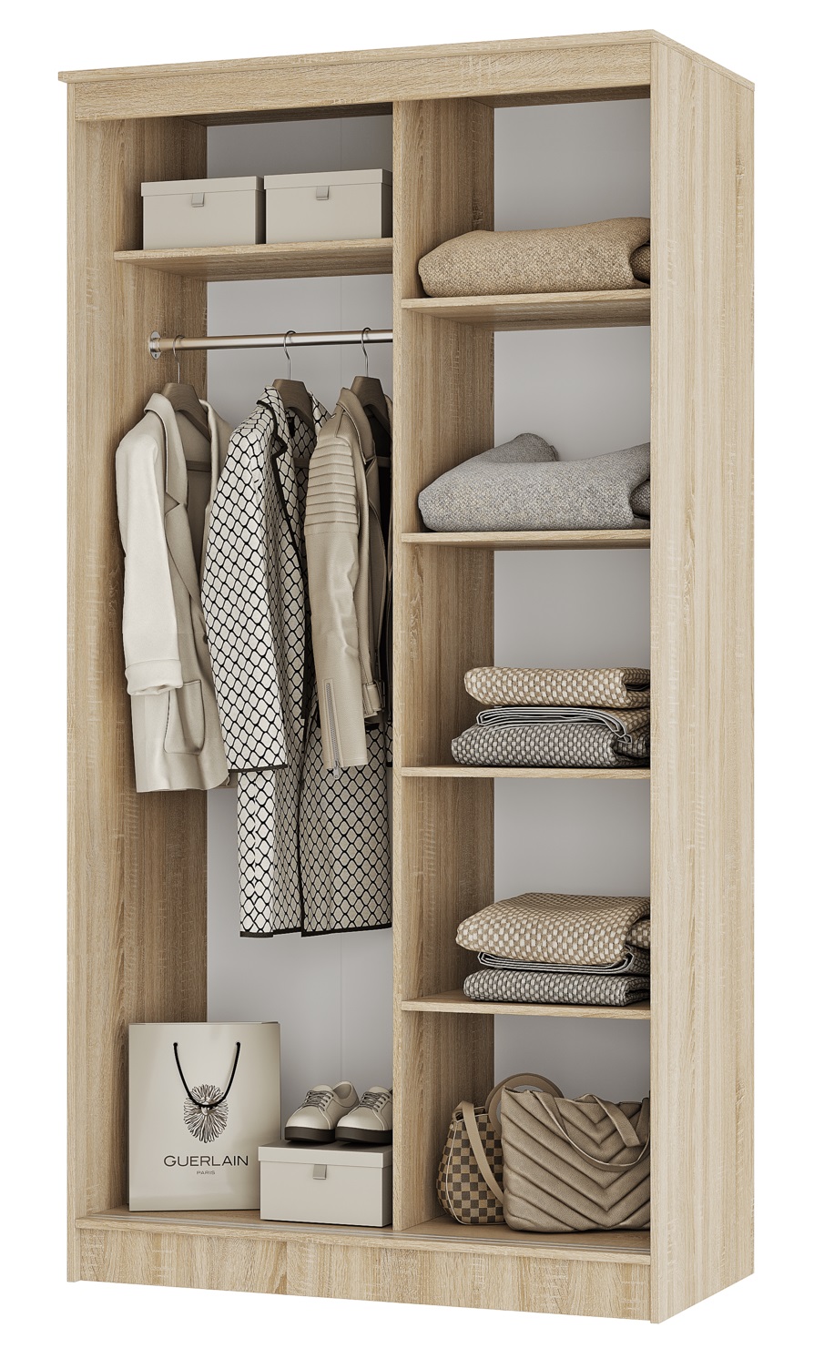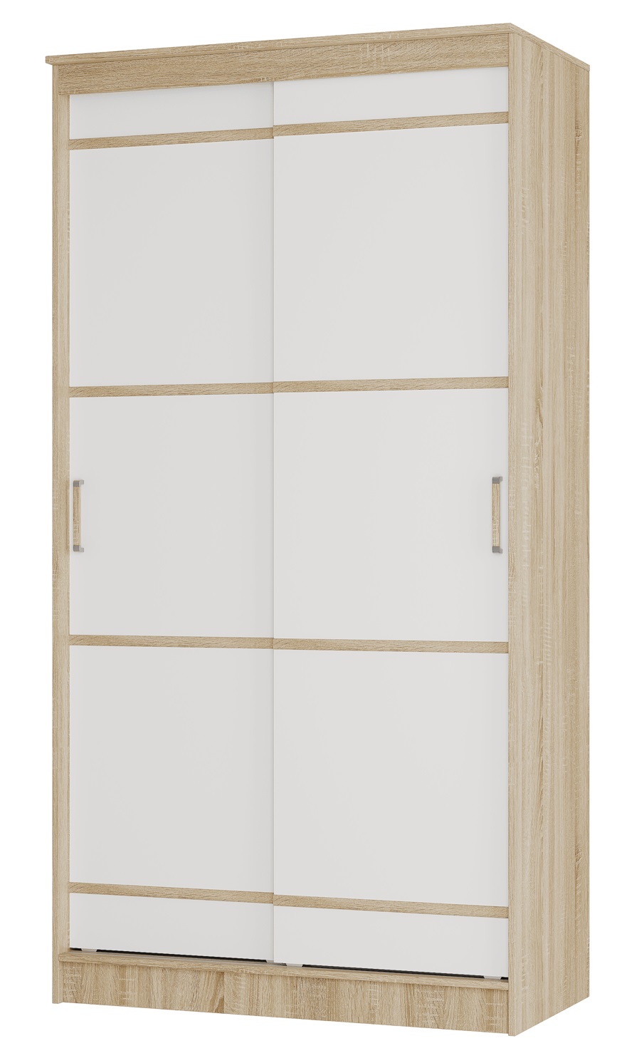 Шкаф-купе Сакура в новом, трендовом декоре "дуб сонома/белый" с рисунком, имитирующим текстуру натурального дерева, будет гармонично смотреться в современном интерьере и благодаря компактному размеру отлично впишется в обстановку спальни или прихожей. Система открывания дверей "купе" экономит пространство перед шкафом, а приятный белый декор с геометрическим рисунком визуально расширяет пространство. Наполнение шкафа - продольная штанга и комплект полок.