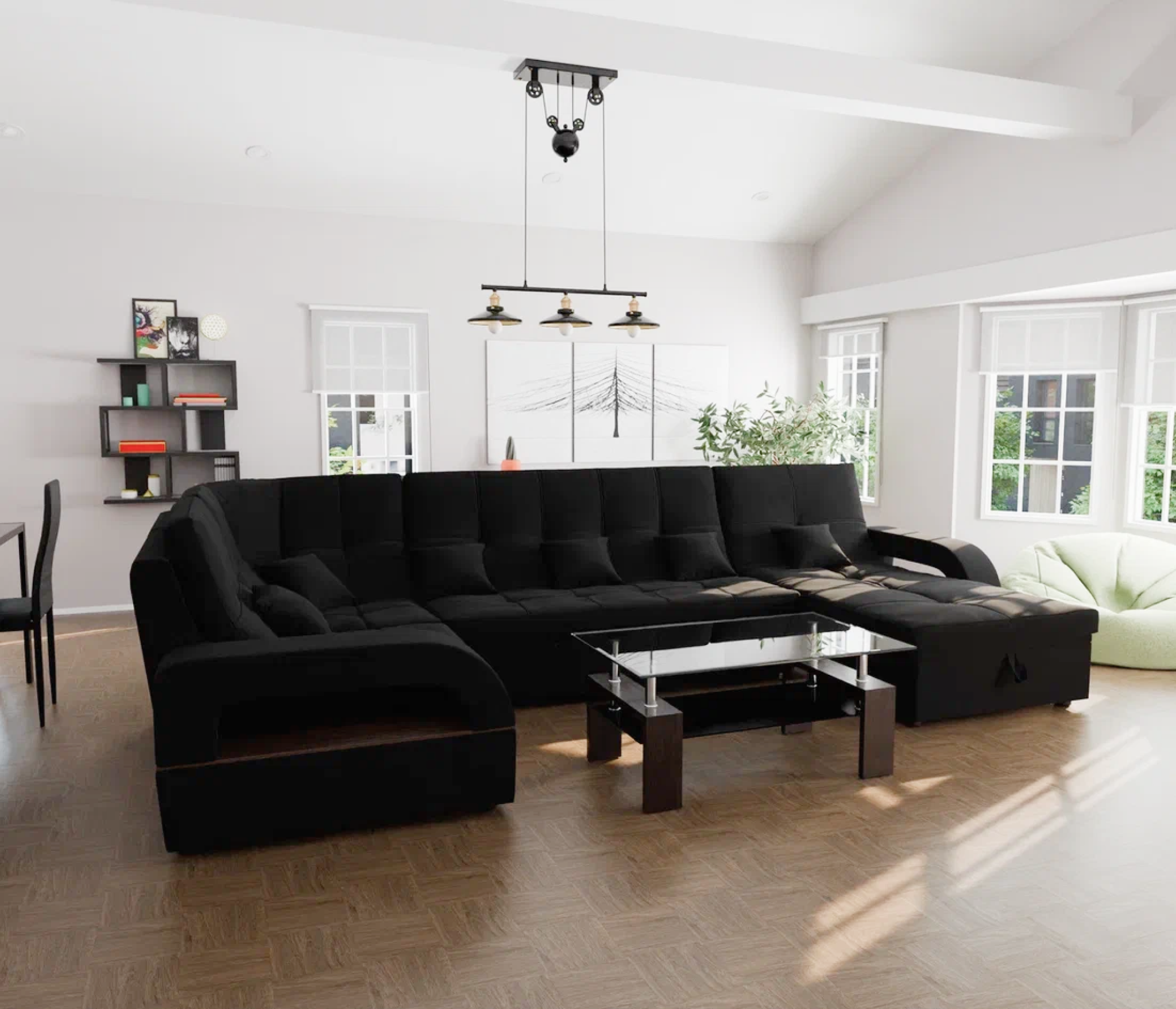 Модульный диван Майами-4,микровелюр,антивандальная ткань,венеция (Real black (Черный))