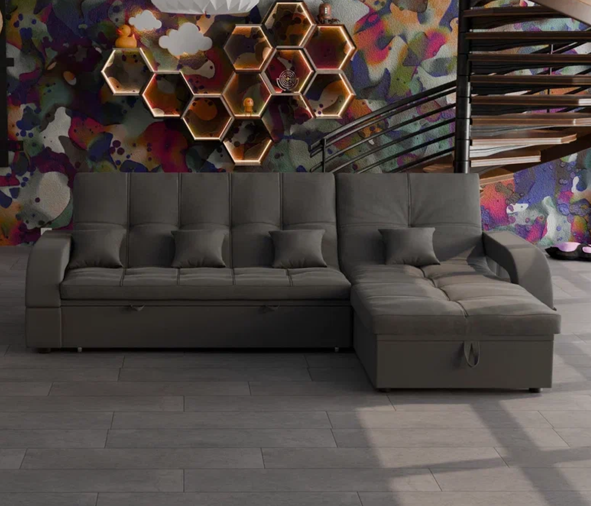 Он имеет высоту 97 см, ширину 268 см и глубину 175 см. Диван обладает универсальным расположением угла, что позволяет его использовать в любом помещении.