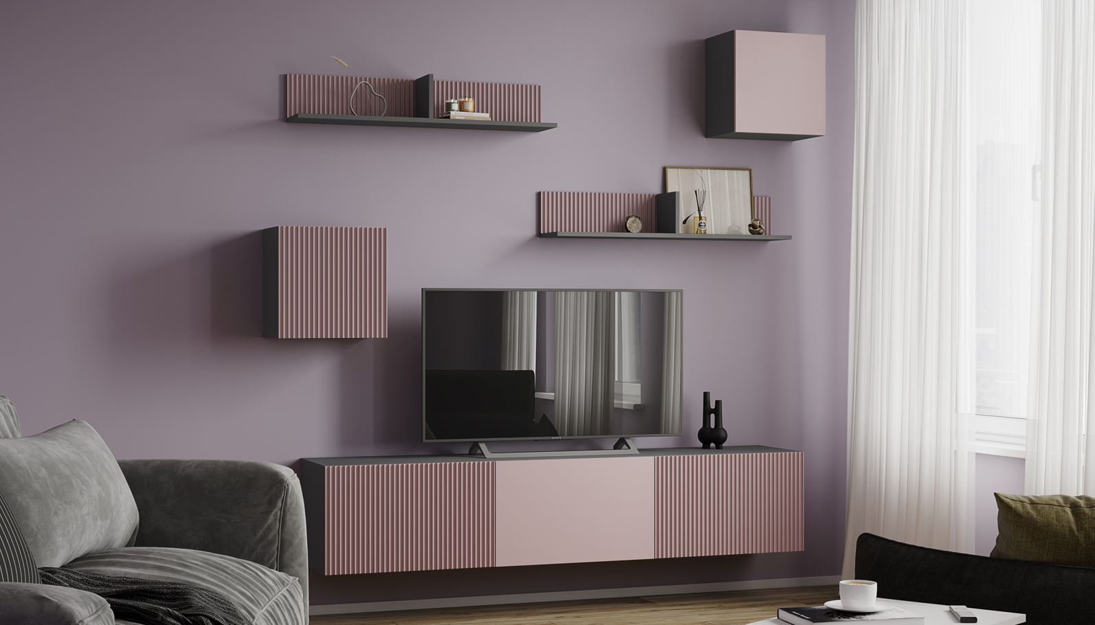 Полка навесная Сириния Куб 1 (Пудровый)