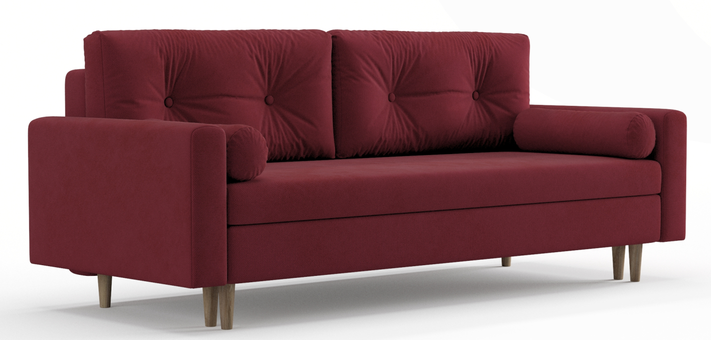 Диван-кровать Таврида, пружинный блок, велюр (Бордовый)