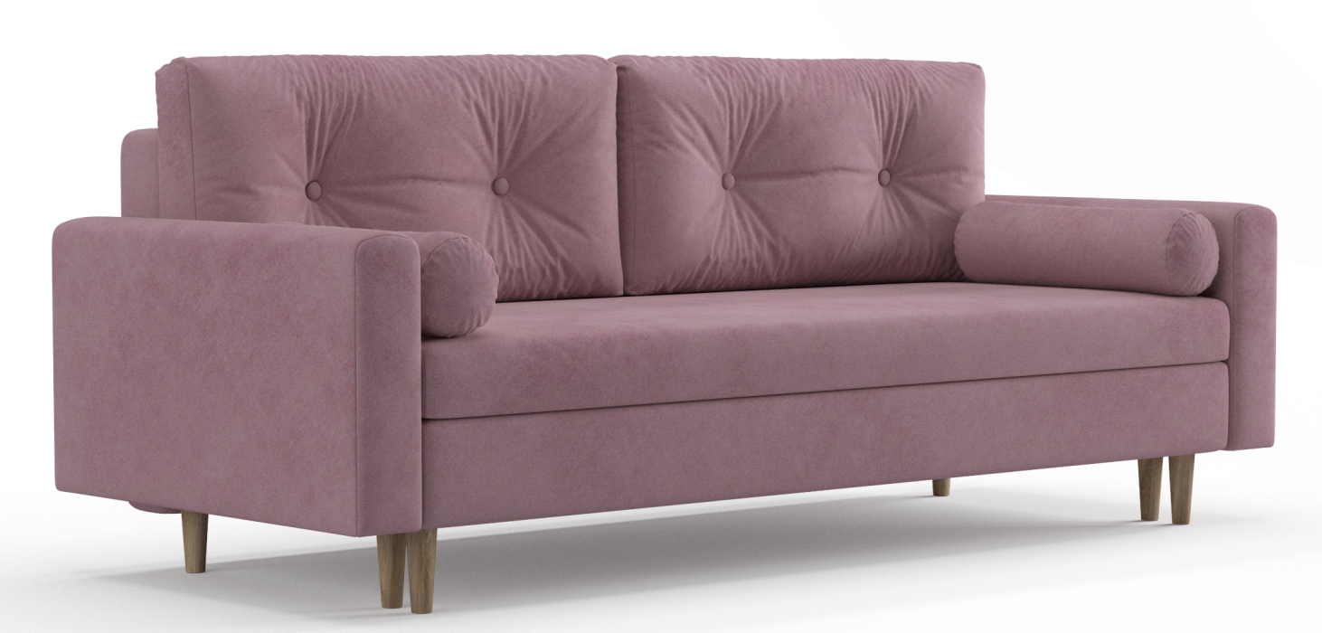 Диван-кровать Таврида, пружинный блок, велюр (Розовый)