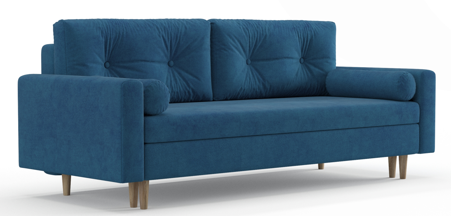 Диван-кровать Таврида, пружинный блок, велюр (Синий)