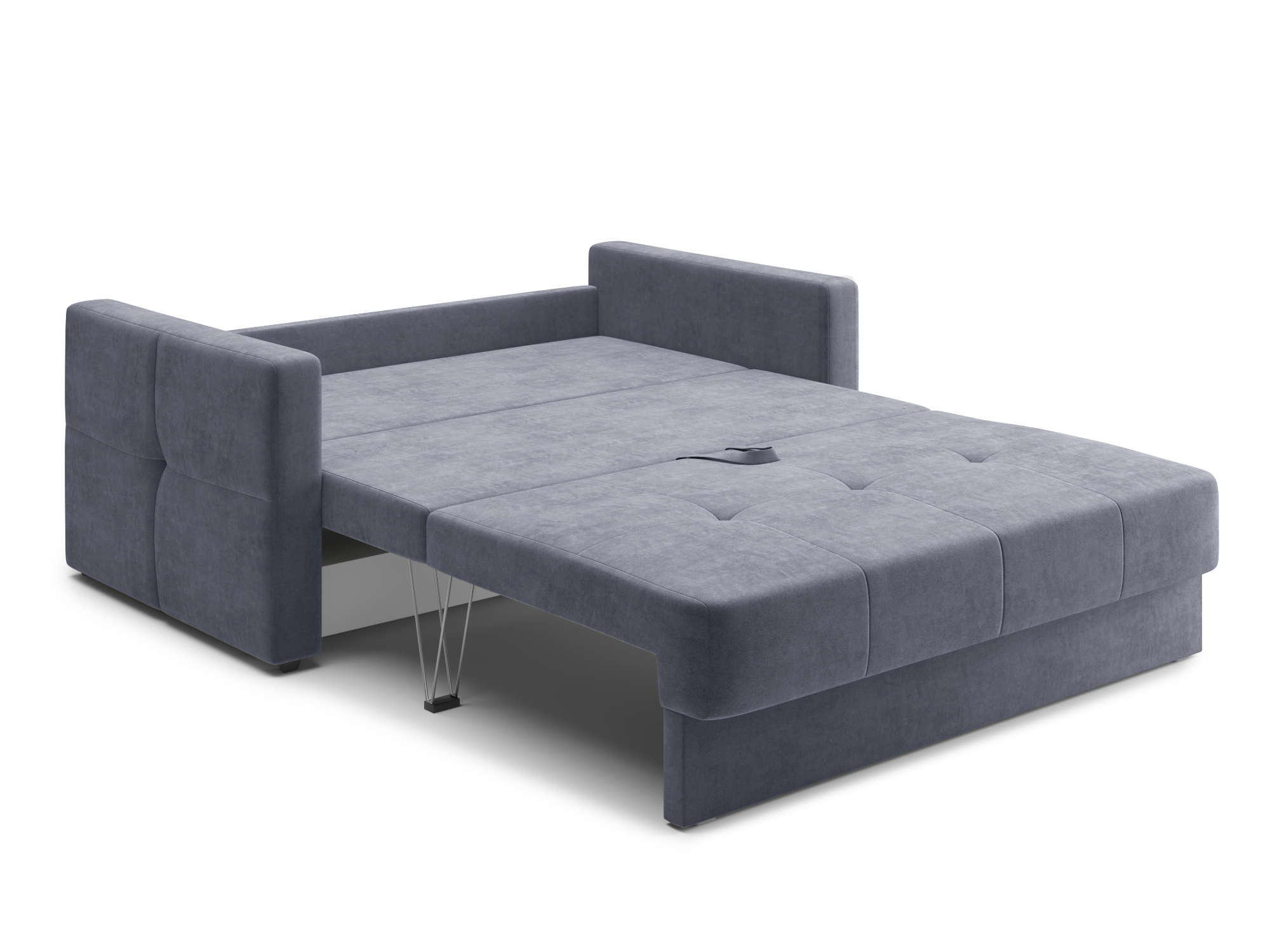 - Механизм раскладки трёхсекционная еврокнижка. В отличие от еврокнижки, спальное место у такого дивана образуется поперёк, а не вдоль сидячего места и состоит из трёх частей. Благодаря такой конструкции габариты дивана в ширину могут быть значительно меньше, чем у еврокнижки, что актуально при планировании расстановки мебели в зависимости от размеров помещения. Под сиденьем дивана находится короб для хранения вещей и постельных принадлежностей.
