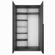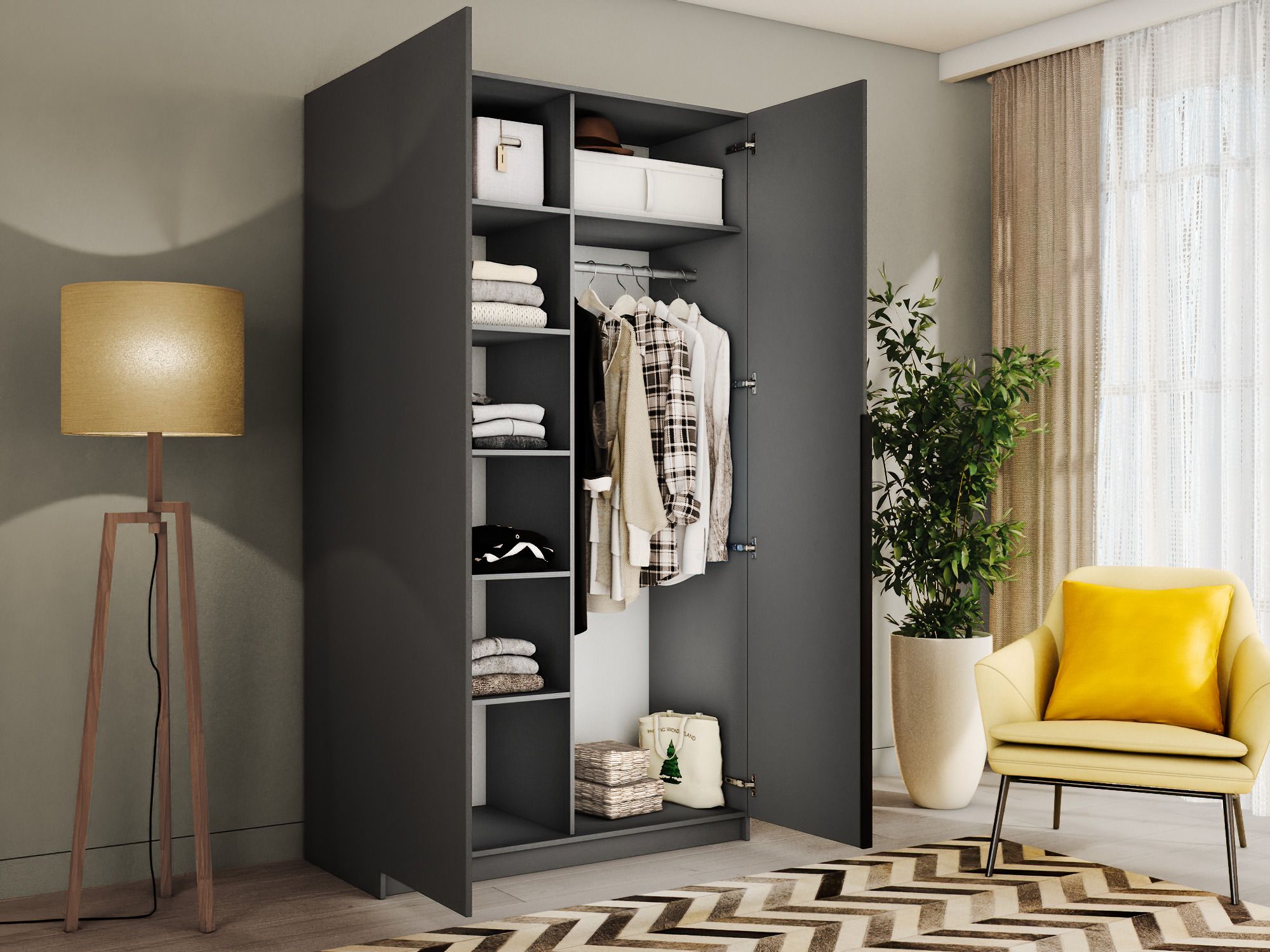 Благодаря надежным полкодержателям - штифтам, полки шкафа могут выдерживать до 15 кг, штанга выдерживает нагрузку до 60 кг. Вы сможете убрать сезонные вещи, постельное белье на верхние полки. Распашной шкаф оснащен долговечной, ударостойкой кромкой ПВХ, которая защищает его торцы от сколов и повреждений, что обеспечит вам комфортное и долгое использование гардероба. Распашная система дверей Titus B-Type обеспечивает надежное прилегание дверцы к корпусу шкафа и высокую износостойкость. Механизм не деформируется при значительных нагрузках и максимально практичен в эксплуатации. Шкаф оснащен удобной минималистичной ручкой, изготовленной из алюминия. В производстве используется безопасное ЛДСП международного класса Е1, что способствует безопасному использованию на протяжении всего срока эксплуатации.