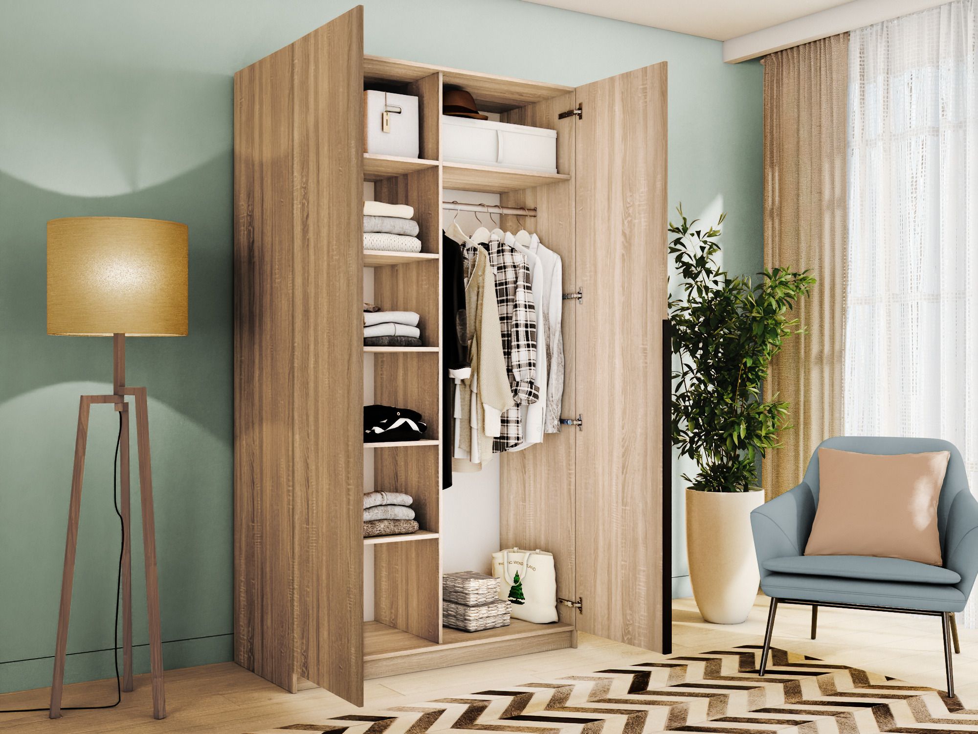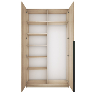 Благодаря надежным полкодержателям - штифтам, полки шкафа могут выдерживать до 15 кг, штанга выдерживает нагрузку до 60 кг. Вы сможете убрать сезонные вещи, постельное белье на верхние полки. Распашной шкаф оснащен долговечной, ударостойкой кромкой ПВХ, которая защищает его торцы от сколов и повреждений, что обеспечит вам комфортное и долгое использование гардероба. Распашная система дверей Titus B-Type обеспечивает надежное прилегание дверцы к корпусу шкафа и высокую износостойкость. Механизм не деформируется при значительных нагрузках и максимально практичен в эксплуатации. Шкаф оснащен удобной минималистичной ручкой, изготовленной из алюминия. В производстве используется безопасное ЛДСП международного класса Е1, что способствует безопасному использованию на протяжении всего срока эксплуатации.