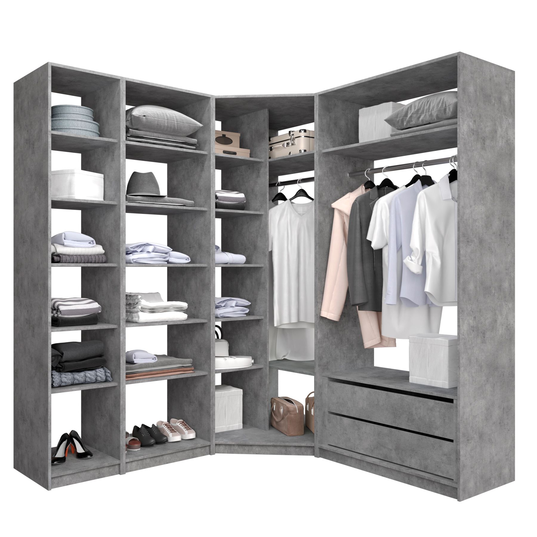 Отзывы о Столплит Угловая гардеробная система с полками и модулем MOD_COMPL_UG Бетон
