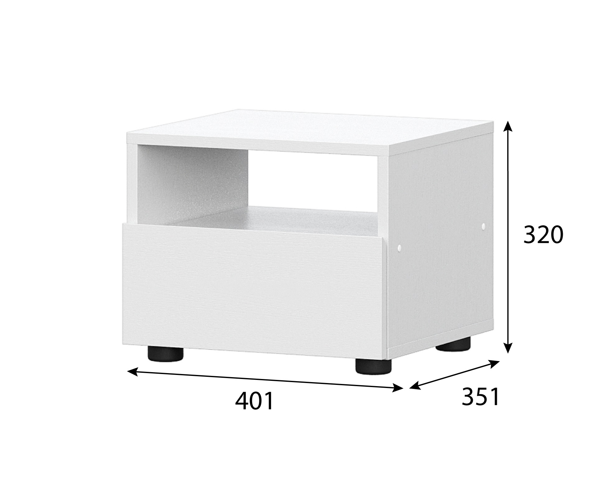 Низкая прикроватная тумба ТОКИО с ящиком на роликовых направляющих дополнит мебельный гарнитур Вашей современной спальни и не займет много места благодаря компактному размеру. Открывание ящика производится за верхнюю часть скошенного фасада.