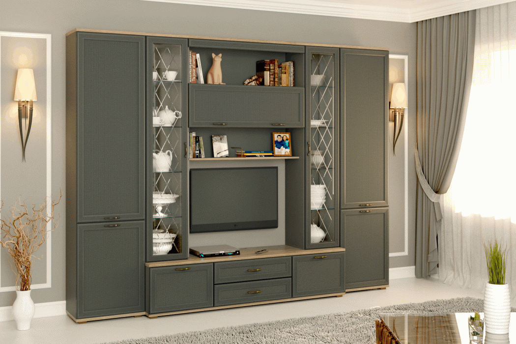 Гостиная Карина ГК-1003 (Гикори Джексон светлый/Серый Оникс)