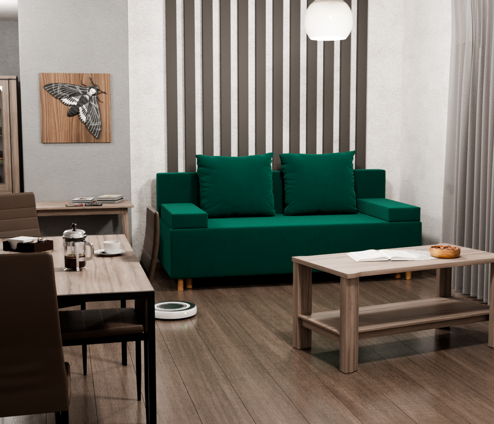 Прямой диван Инди,еврокнижка,велюр (Зеленый) Код I0000396594