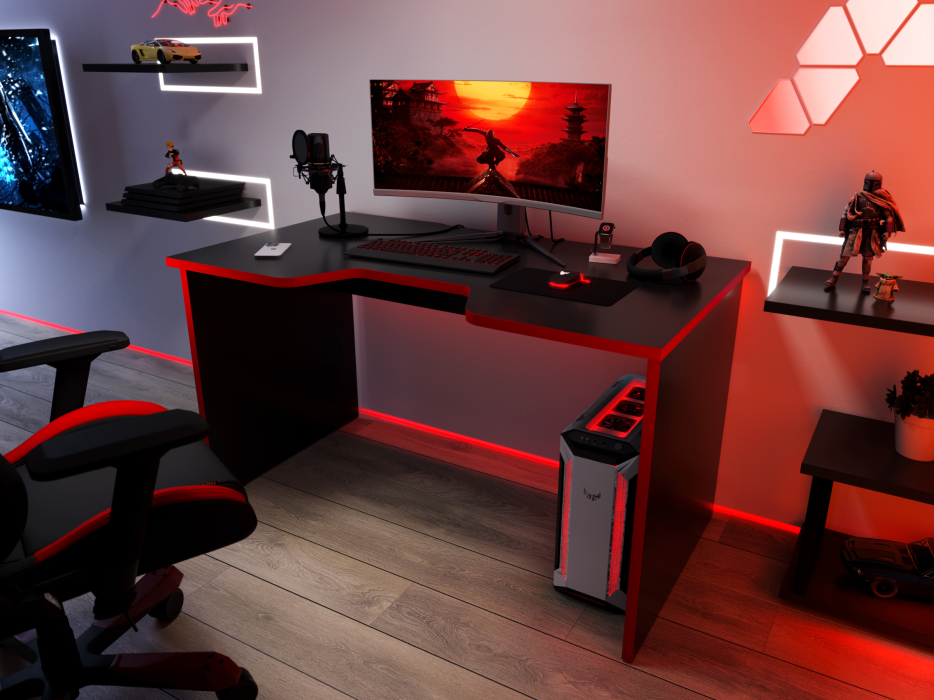 Игровой компьютерный стол С-240 предназначен для эксплуатации в офисах, образовательных учреждениях, а также домашних условиях. Благодаря своей форме удобен для долгой работы с компьютером. Глубина 75 см обеспечит удобную работу как на ноутбуке, так и на стационарном компьютере. Длина стола 135 см позволяет удобно разместить 2 монитора. Вырез под провода ш450 х г20 мм.