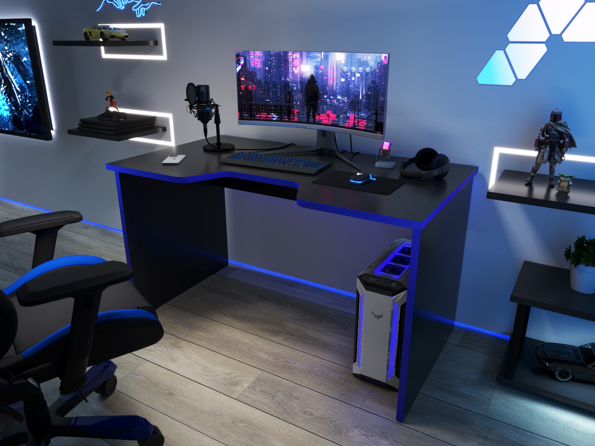 Геймерский стол С-240 (Синий/ черный) Код I0000401418