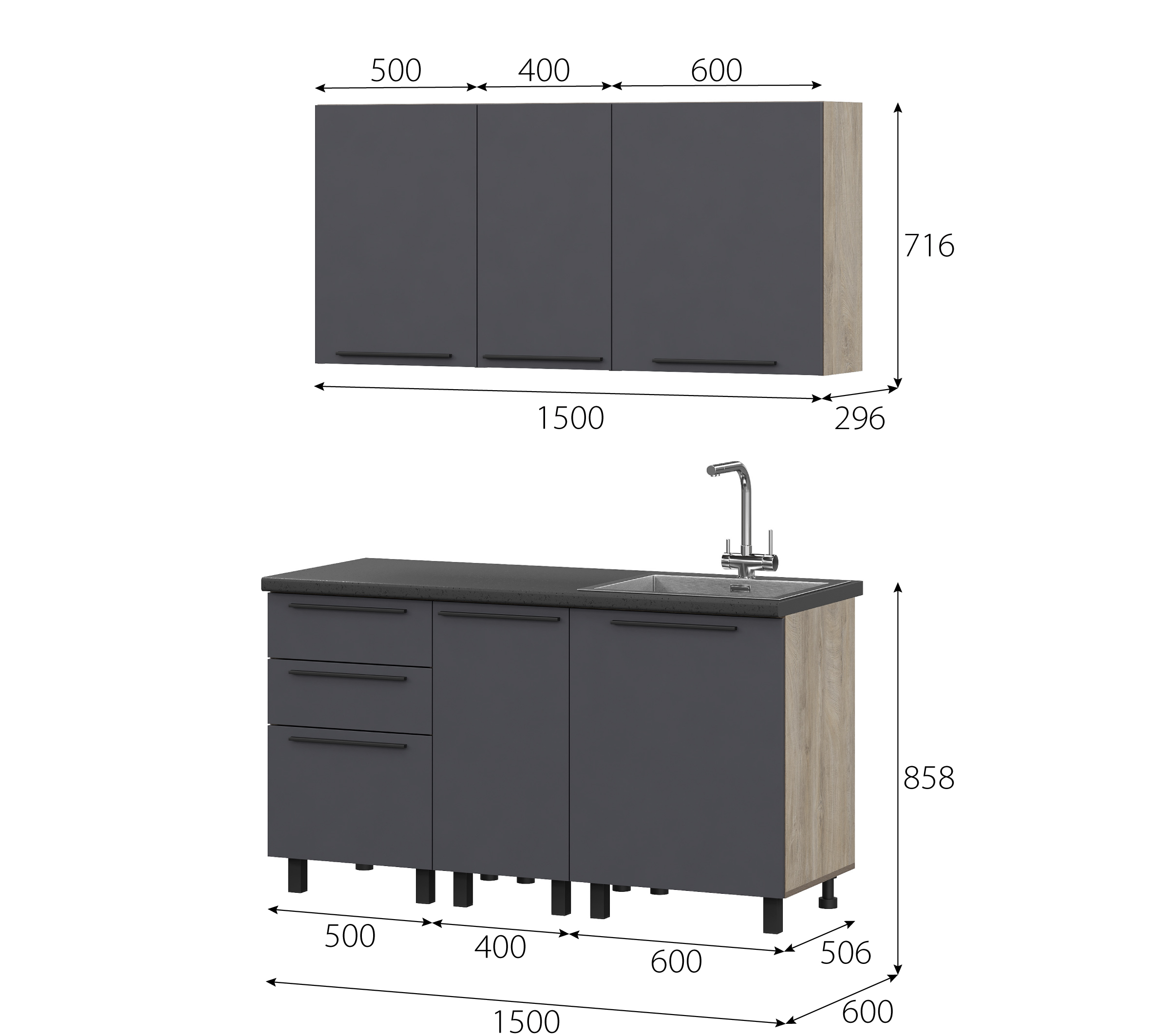Модульная кухня Этна Софт Графит выполнена в современном стиле и сочетает в себе глубокий темно-серый оттенок фасадов и древесный декор корпуса. Актуальное исполнение, продуманное наполнение шкафов, фурнитура европейского качества. Особенностью выступают 3Д фасады Гиза.