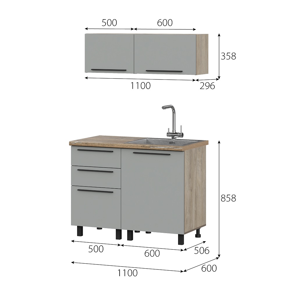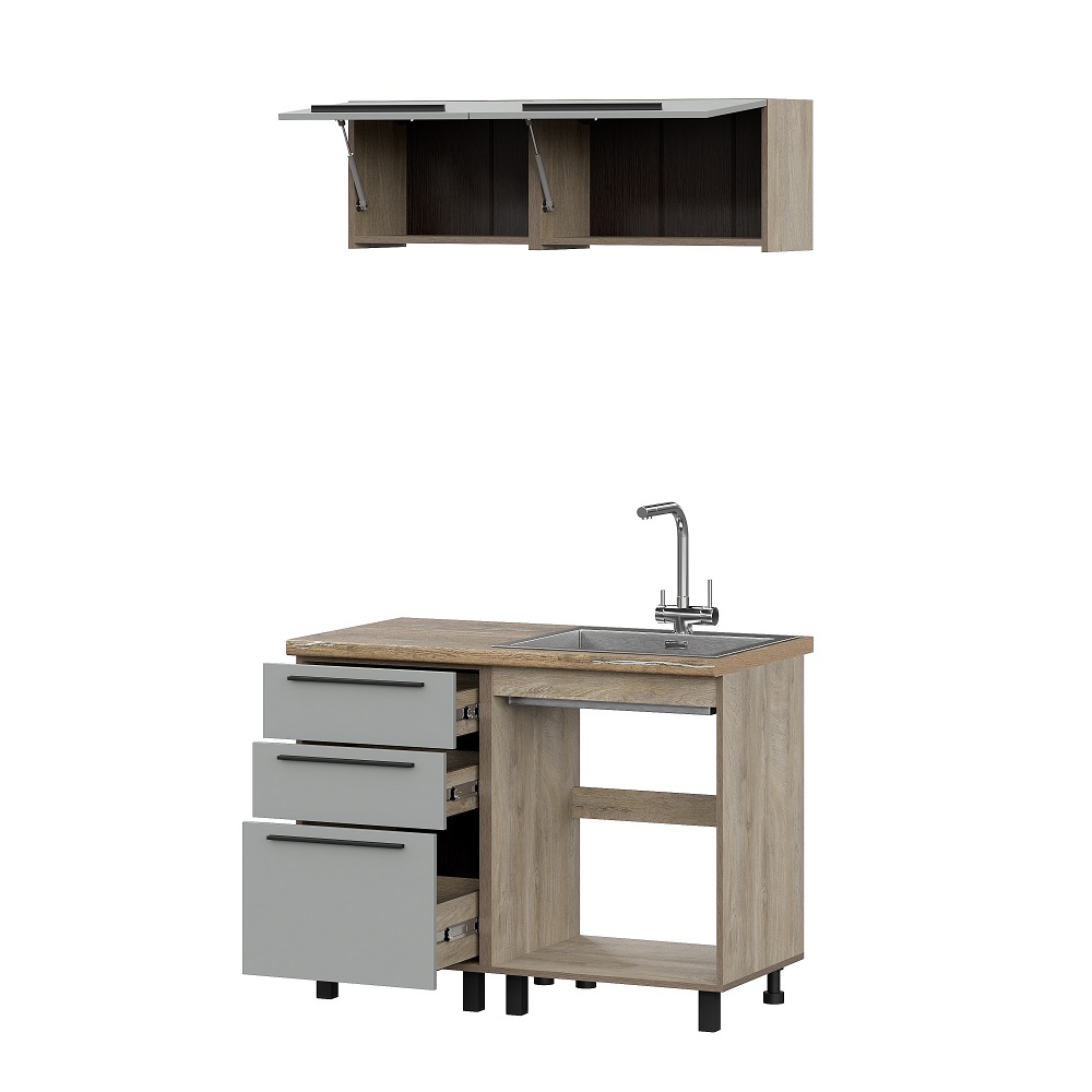 Модульная кухня Этна Софт Грей выполнена в самом трендовом декоре этого года – выбеленном нежно-сером оттенке с пудровой текстурой Soft. Такой декор фасадов гармонично дополняет корпус с древесным рисунком эндгрей необработанный. Кроме визуальной составляющей, серия удивляет разнообразием модулей и продуманным наполнением каждого из них.