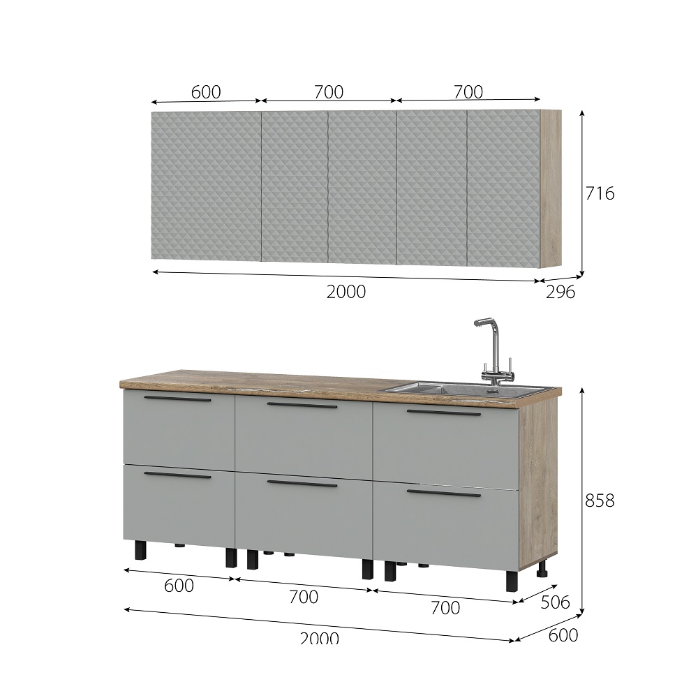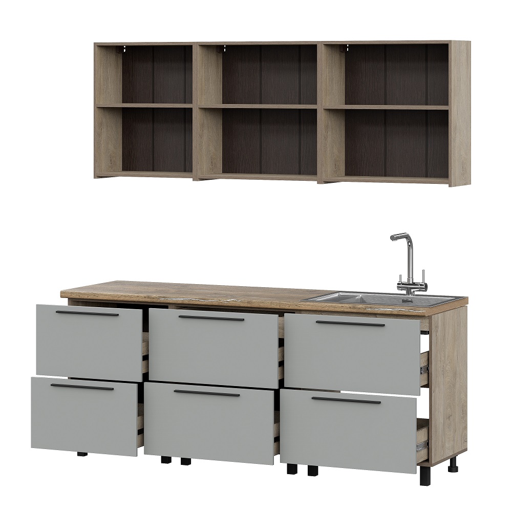 Модульная кухня Этна Софт Грей выполнена в самом трендовом декоре этого года – выбеленном нежно-сером оттенке с пудровой текстурой Soft. Такой декор фасадов гармонично дополняет корпус с древесным рисунком эндгрей необработанный. 3Д фасады Гиза выглядят стильно и создают оптические формы.