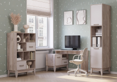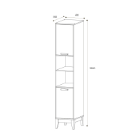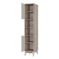 Пенал из модульной серии Скандика состоит из четырех полок, скрытых за дверцами и двух открытых полок, на которых можно разместить книги, документы, предметы декора, игрушки и одежду. Ручки повторяют текстуру корпуса «дуб смоки», а створки плотно фиксируются на магнитах.