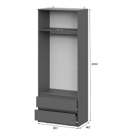 Шкаф Денвер с распашными дверьми и двумя ящиками в цвете графит - это идеальный выбор для тех, кто ищет стильную и функциональную мебель для своего дома. За распашными дверцами скрыты полки и штанга для одежды. Шкаф имеет два выдвижных вместительных ящика для хранения необходимых вещей. Цвет дуб золотой/белый выглядит стильно и практично, а благодаря своей универсальности, он подойдет для любого современного интерьера.