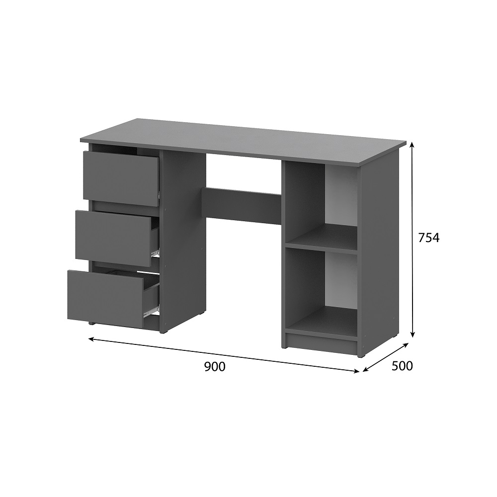 Письменный стол Денвер в цвете графит - это идеальное сочетание стиля и функциональности. Он имеет просторную рабочую поверхность, на которой вы сможете разместить все необходимые предметы.