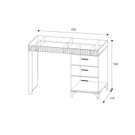 Столик имеет лаконичный дизайн и оснащен зеркалом. Также столик имеет три выдвижных ящика для хранения косметики, украшений и других предметов. Ножки столика регулируются по высоте, что позволяет установить его на любой поверхности. Сборка универсальная
