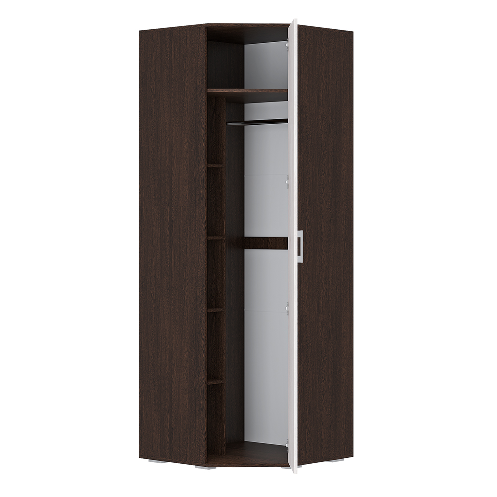 Угловой шкаф Белла в цвете венге/ясень белый — это стильный и функциональный элемент интерьера. Он идеально подходит для хранения одежды, обуви и аксессуаров. Благодаря своей угловой конструкции, шкаф позволяет максимально эффективно использовать пространство комнаты и экономить место.