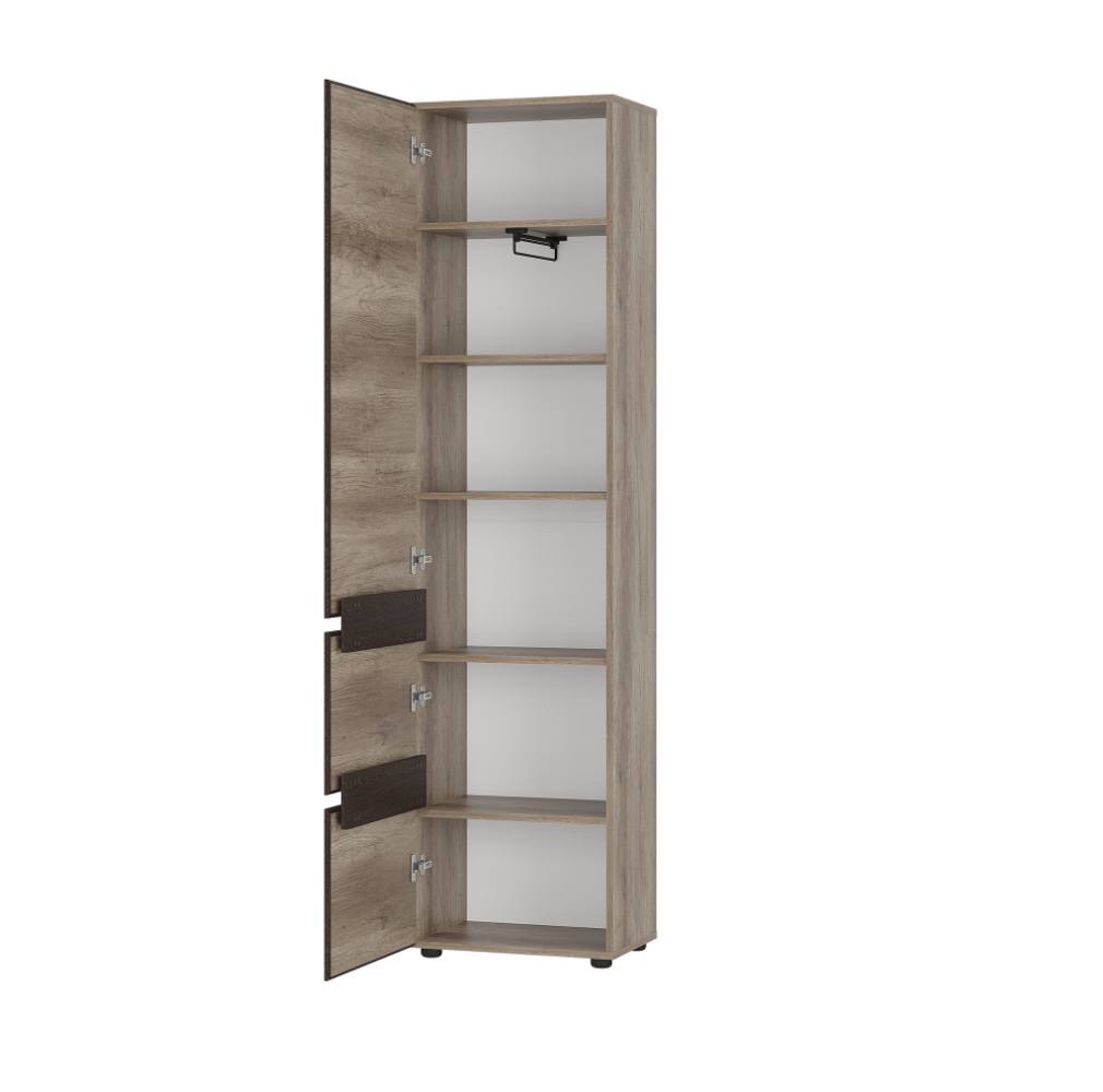 Компактный и вместительный пенал «Энигма» — универсальное решение для вашего дома. Модель подойдёт для спальни, гостиной и прихожей. Пенал состоит из двух просторных полок и отсека с евроштангой выкатной для вертикального хранения. По желанию Вы можете заменить штангу дополнительными полками ПЛ-28. Полки приобретаются отдельно.