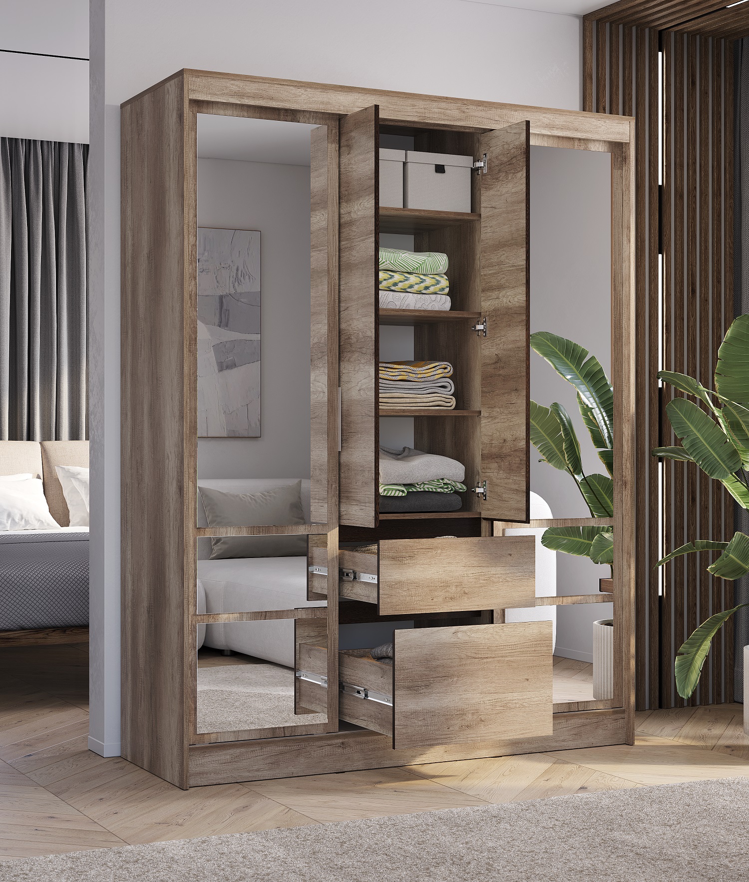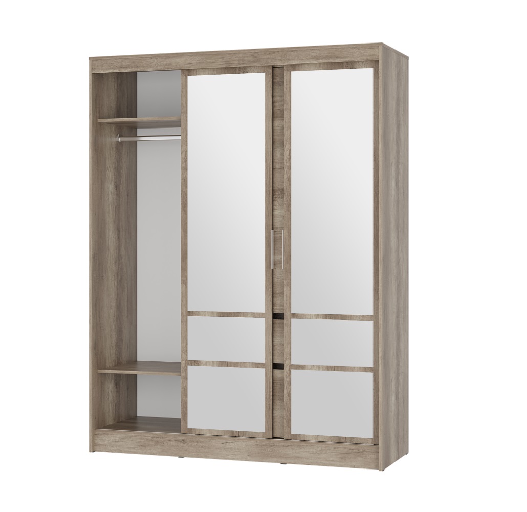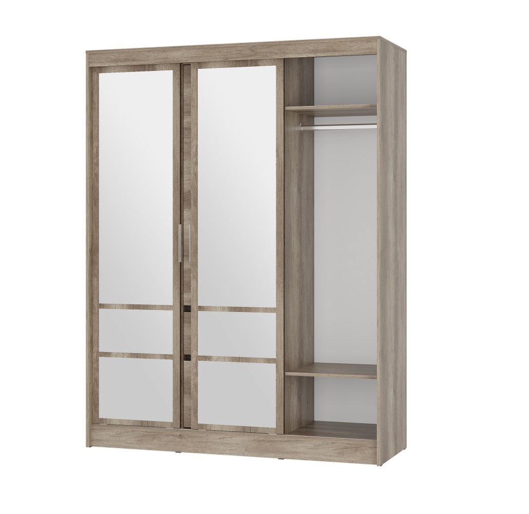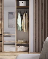 Шкаф-купе «Энигма» — это оптимальное сочетание габаритов и функционала. Модель не занимает много места, но позволяет хранить большой гардероб. Шкаф состоит из одной зоны с полками, двух зон со штангой для вертикального хранения и двух выдвижных ящиков.