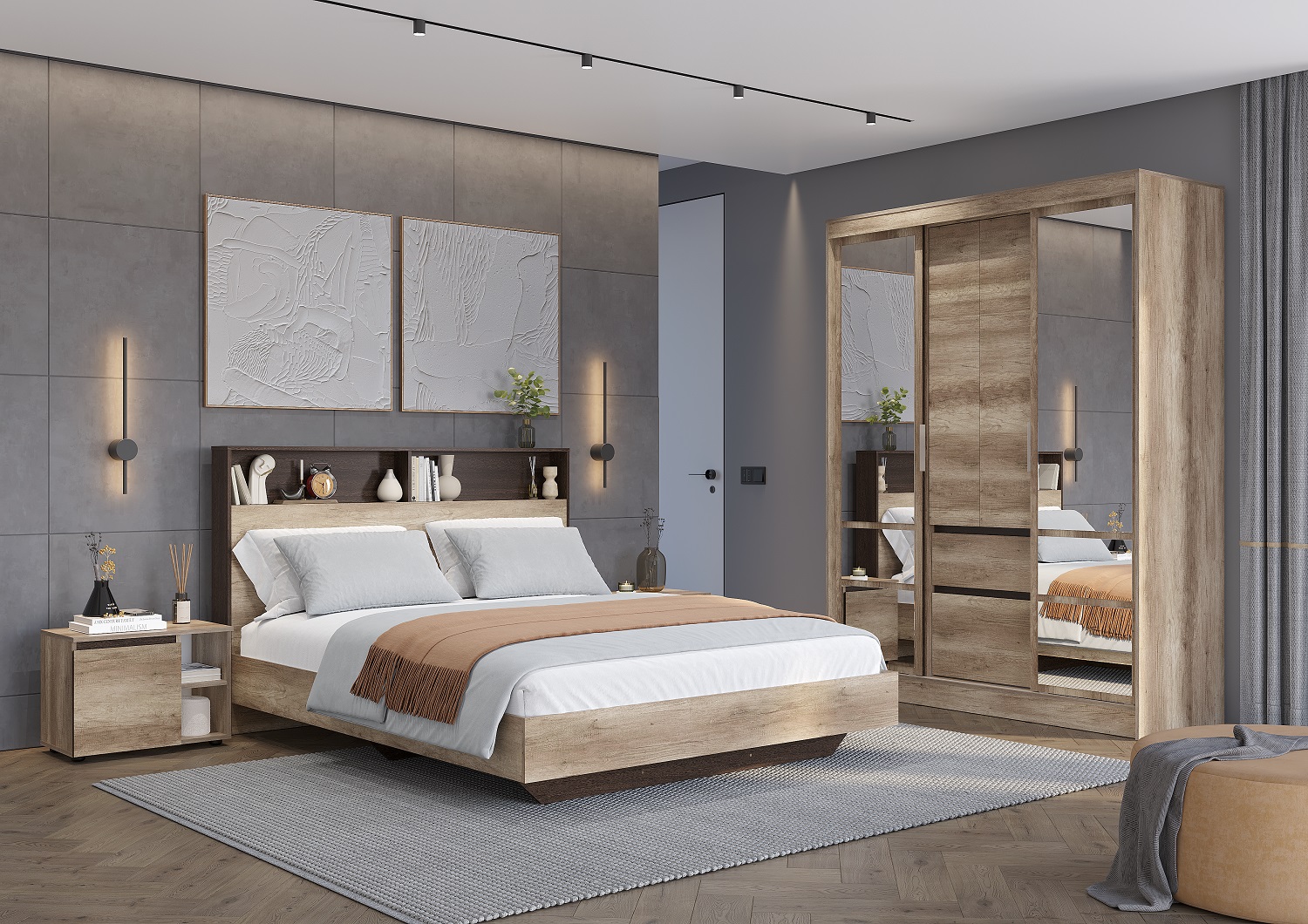 Коллекция «Энигма» сочетает в себе элементы брутального стиля и экостиля. Коллекция выполнена в спокойных оттенках «дуб каньон» с эффектом натурального шпона, повторяющего текстуру мебели. Прямые и четкие линии придают строгости, лаконичности, элегантности мебели. Эта коллекция подчеркнет индивидуальность и придаст пространству силу и авторитетность.