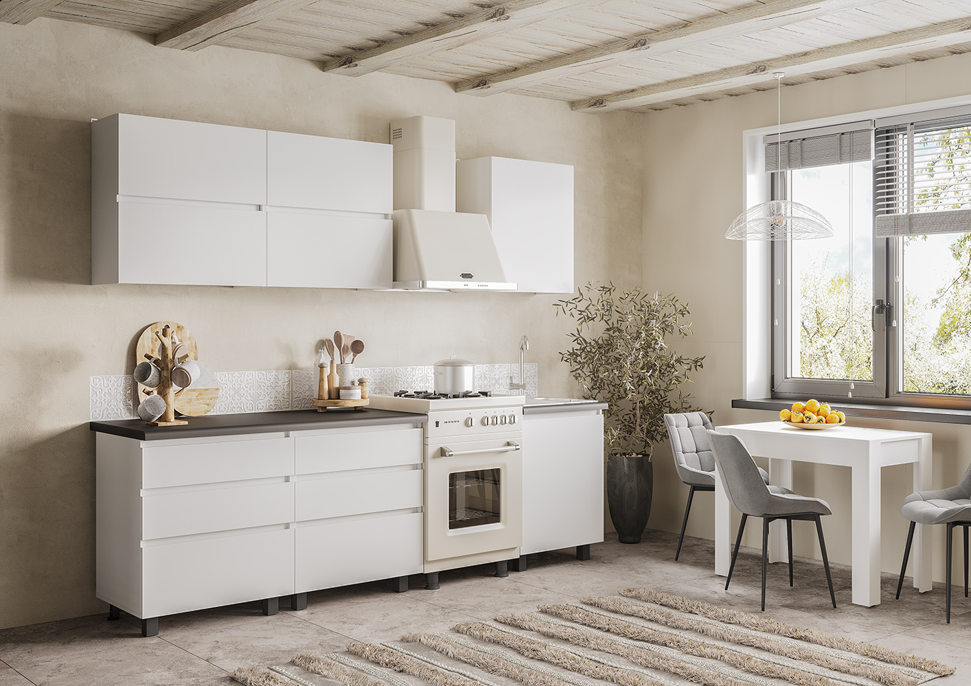 Кухня Арника Лайт в светлых оттенках – это стильное решение для современного дома. Универсальный дизайн готовой кухни Арника Лайт позволяет гармонично вписать ее в любой интерьер. Данная модель подойдет и для городской квартиры, и для загородного дома в классическом стиле.