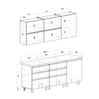 Внимание! Длина столешницы составляет 2 метра. При необходимости её можно распилить на нужные размеры для удобной расстановки кухонных шкафчиков.