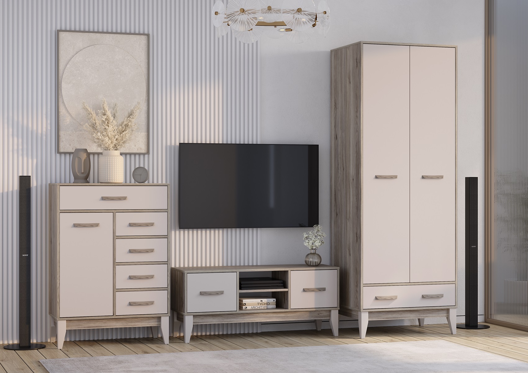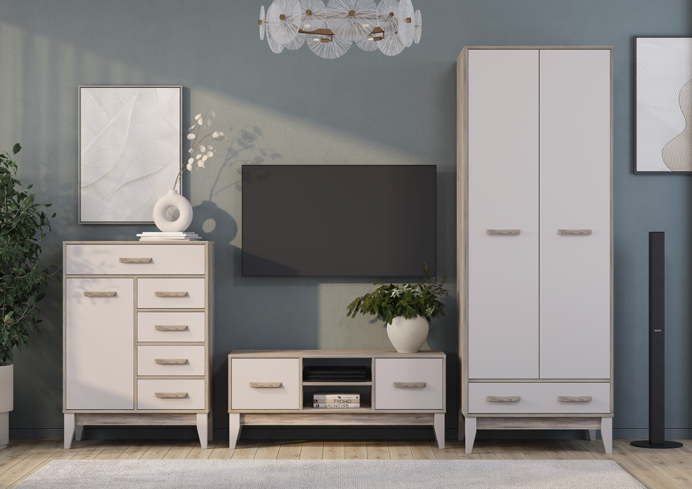 Коллекция Скандика — это светлая и тёплая модульная коллекция, созданная для тех, кто любит быть дома. Она выполнена в скандинавском стиле с декором, имитирующим текстуру натурального дерева.