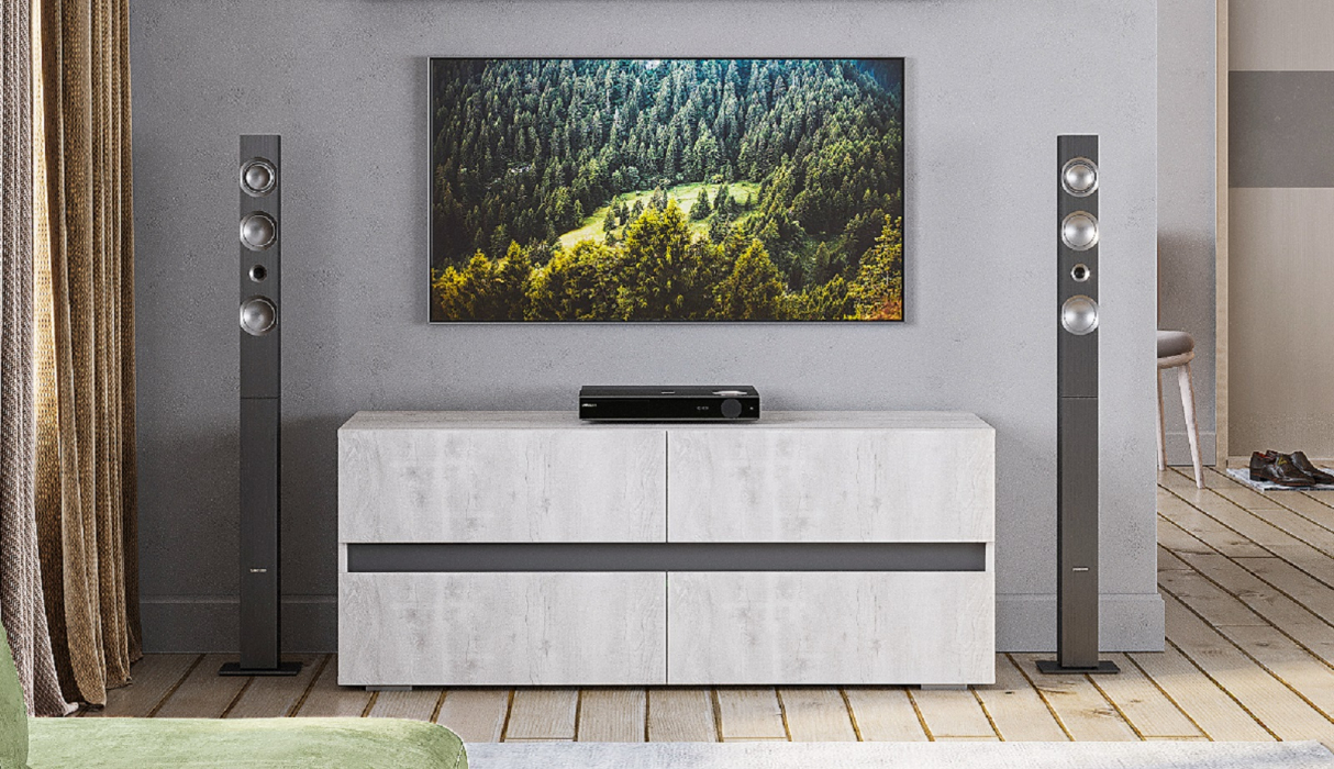 Вместительная тумба под телеаппаратуру из коллекции Мрия с выкатными ящиками.