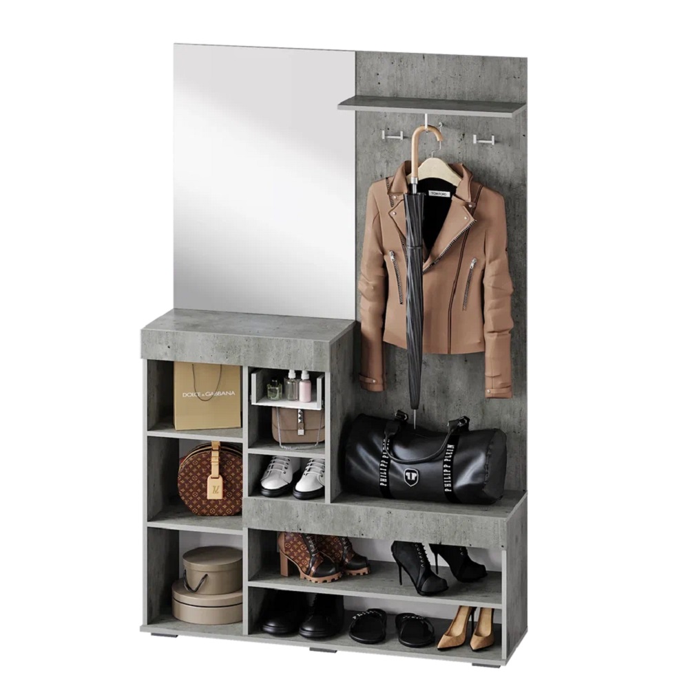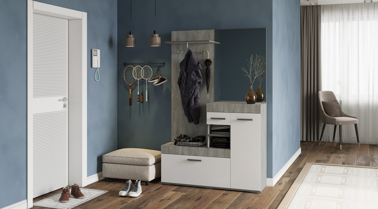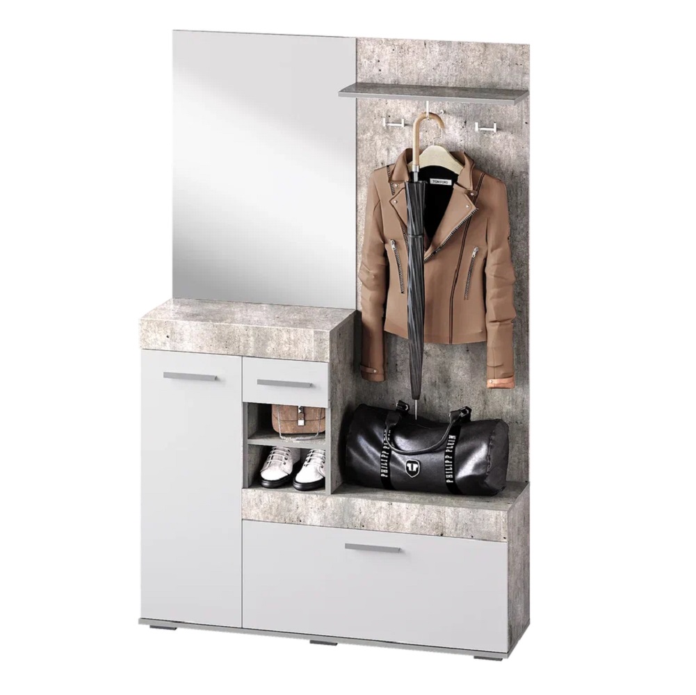Прихожая Инстайл в цвете бетон и белый — идеальное сочетание стиля и функциональности для вашего дома. Эта прихожая изготовлена из высококачественных материалов, обеспечивающих долговечность и надёжность. Благодаря своему современному дизайну она легко впишется в любой интерьер и сделает вашу прихожую уютной и функциональной.