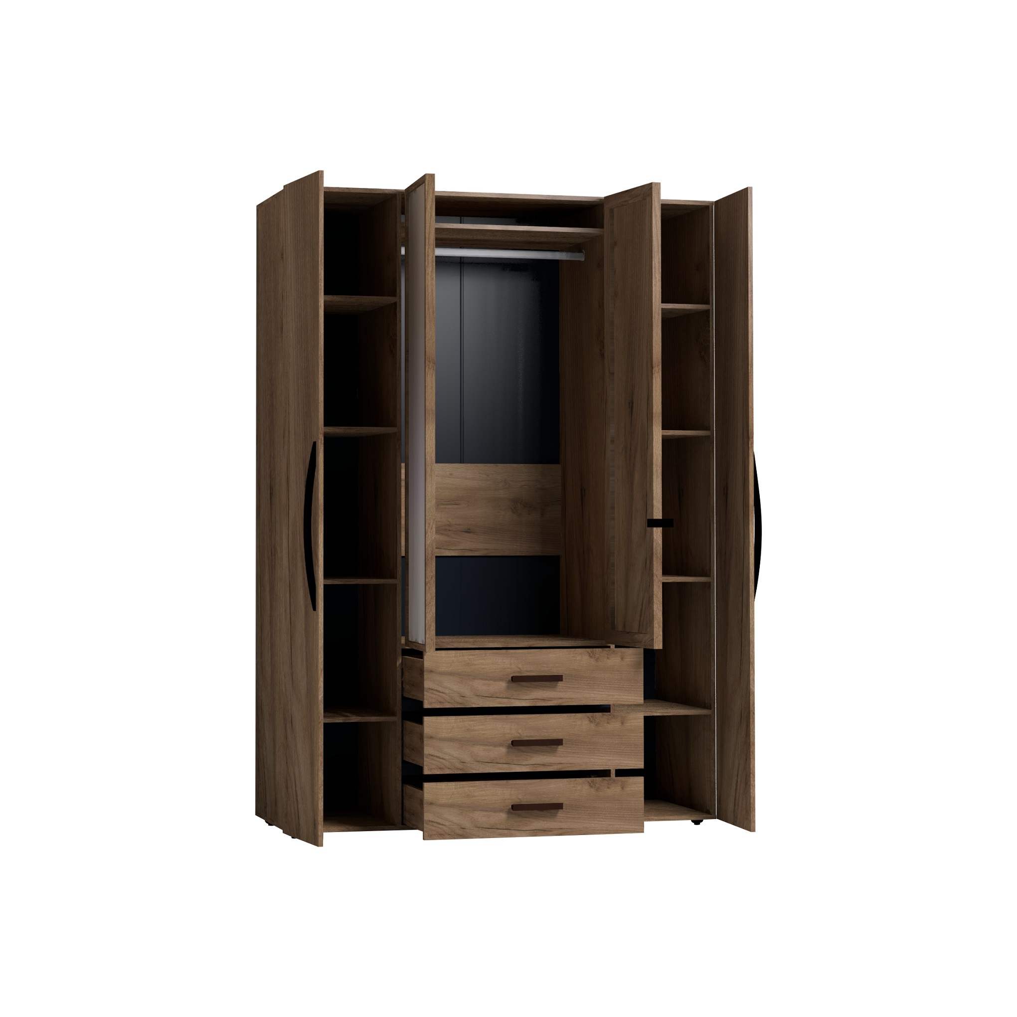 Теплота натурального дерева - это уже неретро, а ультрамодный шик! Древесный декор Дуб Табачный Craft и черная кожа идеально сочетаются в спальне NATURE. Cпальня изготовлена из ЛДСП Дуб табачный крафт, 16 мм,совершенно новое мягкое изголовье кроватей- контрастные вставки из ЛДСП и декоративные золотые нити на черной экокоже сделают изголовье кровати более интересным и современным. Экокожа очень легко чистится и не выгорает под воздействием солнечных лучей.Простые прямые линии, отсутствие сглаженных углов и лишних изгибов придают спальне NATURE особую атмосферу стиля лофт.Изголовье в древесной раме, декоративная строчка золотой нитью на мягких подушечках кровати из черной экокожи – изюминка спальни NATURE. Максимально рационально использовать квадратные метры спальни позволит подъемное основание, которое идет в комплекте с кроватью. Благодаря газлифтам, основание поднимается без усилий и обеспечивает доступ к вместительному внутреннему коробу, изолированному от пыли.